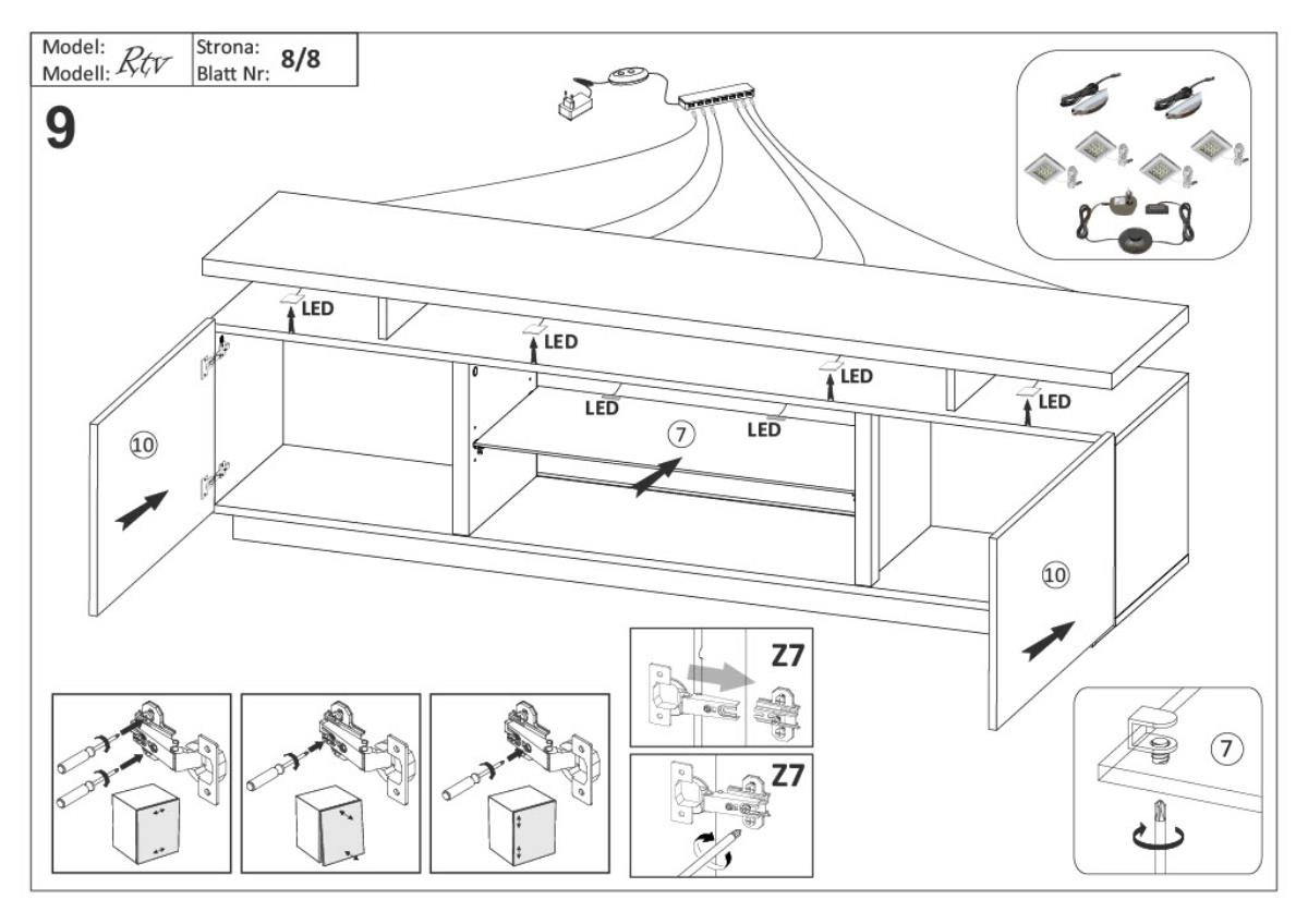 Komoda Eva omogoča opcijsko namestitev LED osvetlitve, ki vključuje napajalnik, štiri sponke in dve LED enoti. Osvetlitev poudari notranjost komode in ustvari prijetno ambientalno svetlobo, primerno za večerne ure. Takšna rešitev ne le poveča estetski vtis, temveč tudi izboljša uporabnost prostora, saj omogoča lažje iskanje predmetov v nižjih svetlobnih pogojih.