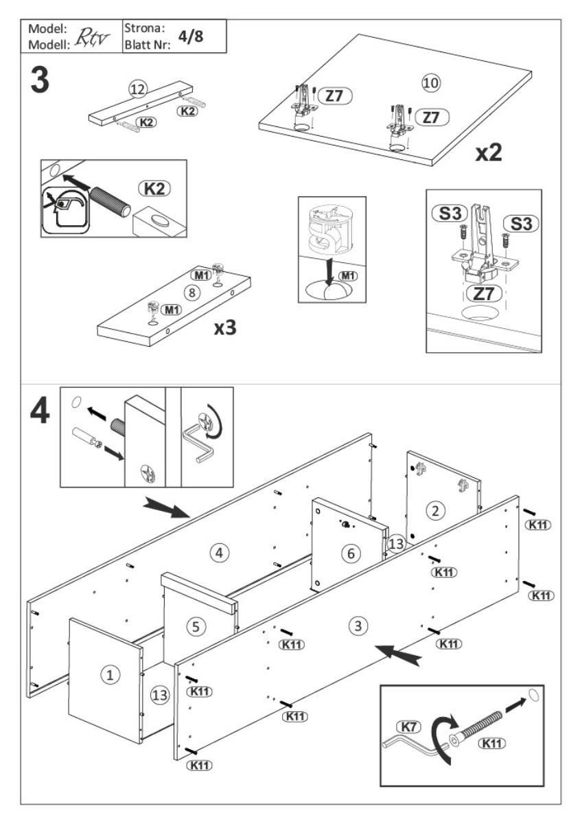 Ohišje komode je izdelano iz laminirane plošče debeline 16 mm, kar omogoča stabilno in robustno konstrukcijo, obenem pa ohranja prefinjen videz. Fronte iz MDF plošč debeline 16 mm so prekrite s PVC folijo v visokem sijaju, ki daje površini globino in odsevnost, značilno za sodobno pohištvo. Zgornja plošča iz MDF materiala debeline 32 mm prav tako nosi zaključek v visokem sijaju, kar dodatno poudari kakovostno izvedbo ter vizualno poveže vse elemente komode.