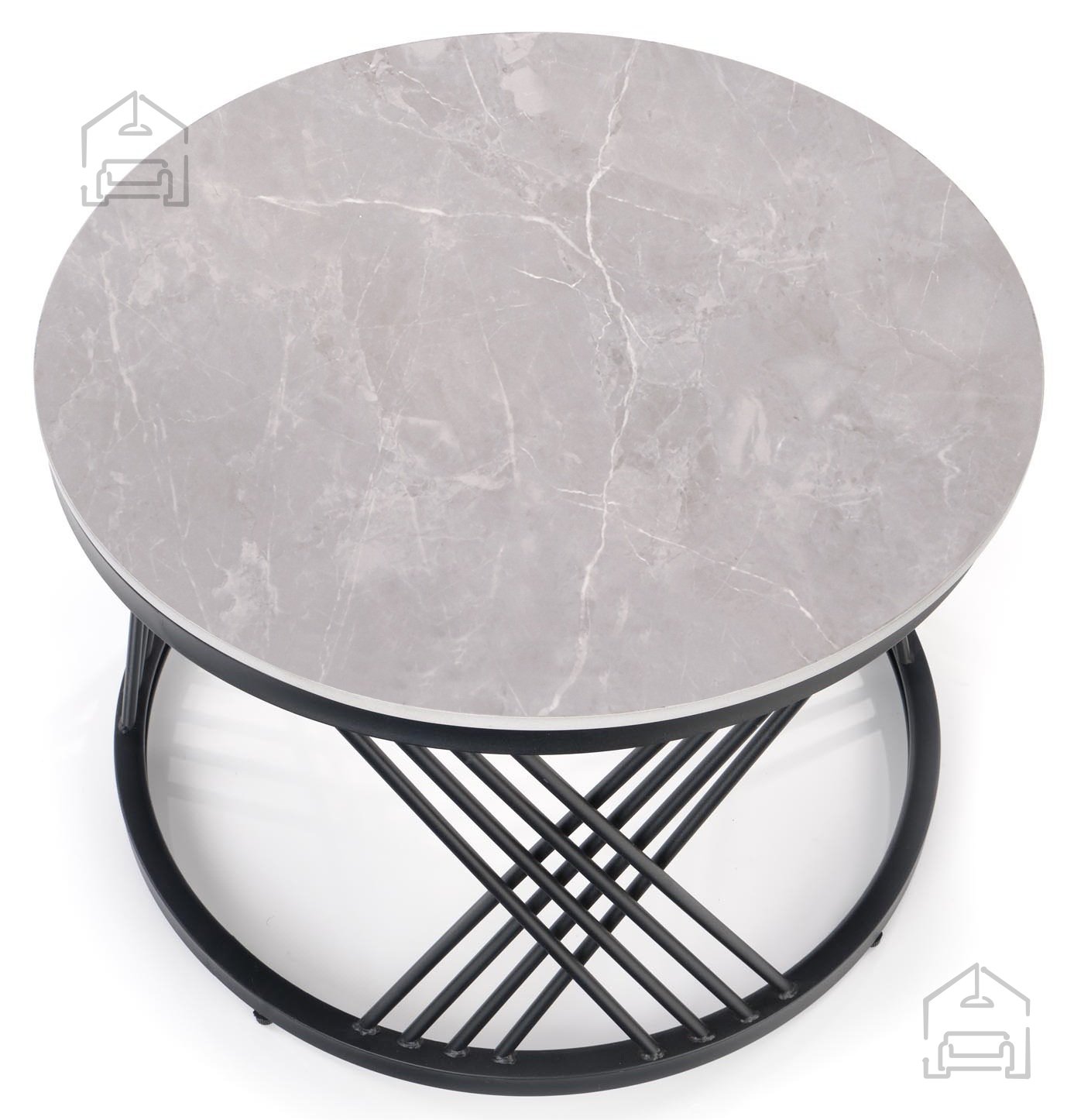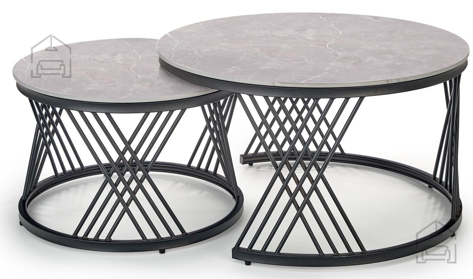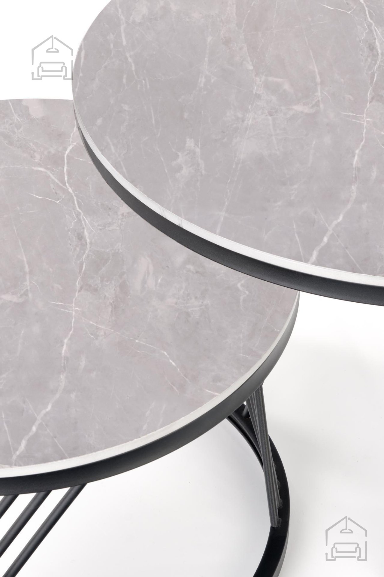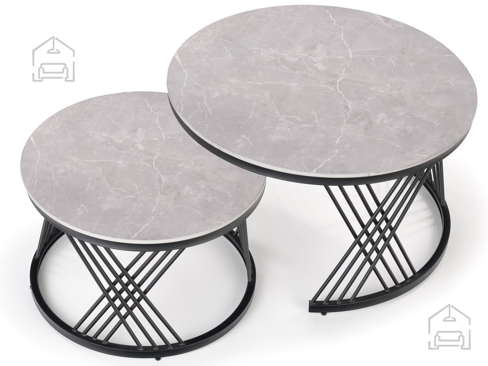 Set klubskih miz Flamingo znamke Halmar združuje sodoben dizajn, vrhunske materiale in premišljeno funkcionalnost. Dve mizici različnih premerov elegantno dopolnjujeta drug drugo, zato ju lahko uporabljate skupaj kot vizualno zanimiv komplet ali ločeno v različnih prostorih. Površina v videzu pepelnato sivega marmorja dodaja pridih prestiža, črno kovinsko ogrodje pa poskrbi za stabilnost in kontrast, ki poudari sodobno estetiko prostora.