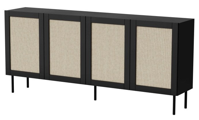 MDF konstrukcija in črne kovinske noge: komoda Juta 200 cm 4D – Halmar.