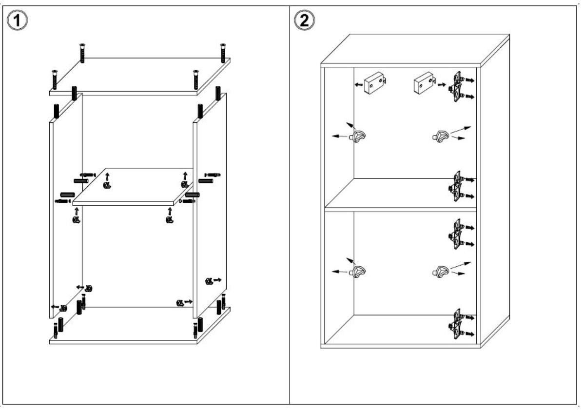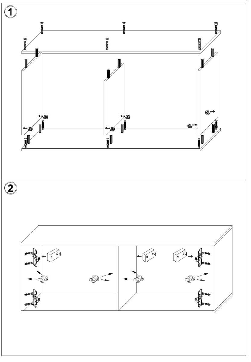 Konstrukcija regala temelji na trpežnih materialih, ki zagotavljajo stabilnost in dolgo življenjsko dobo. Korpus je izdelan iz laminirane iverne plošče v mat izvedbi, kar omogoča enostavno čiščenje ter odpornost proti vsakodnevnim obremenitvam. Frontalni deli so iz MDF plošče, laminirane v visokem sijaju, kar prostoru doda pridih prefinjenosti in vizualne globine. Stekleni deli so izdelani iz kaljenega stekla, ki je znano po svoji trdnosti in varnosti. Ročaji so iz kakovostne plastike, zasnovani za udoben oprijem in preprosto uporabo.