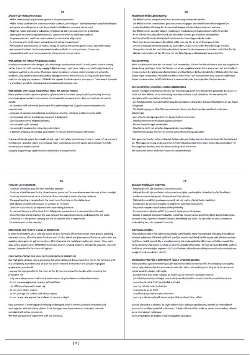 Za čiščenje komode zadostuje mehka, rahlo vlažna krpa. Mat površine ne zahtevajo posebnih čistil, priporočljivo pa je, da se izogibate agresivnim sredstvom in grobim gobicam. Redno brisanje prahu in občasno prezračevanje prostora bosta pripomogla k ohranjanju svežega videza lesa in belih površin. Zahvaljujoč dvignjenim nogicam je čiščenje pod komodo preprosto, kar prispeva k boljšemu vzdrževanju higiene v prostoru.