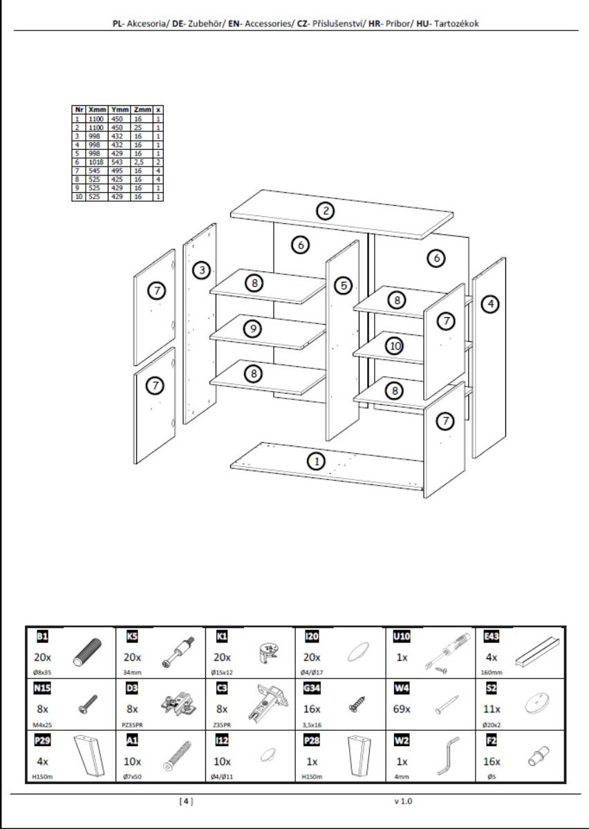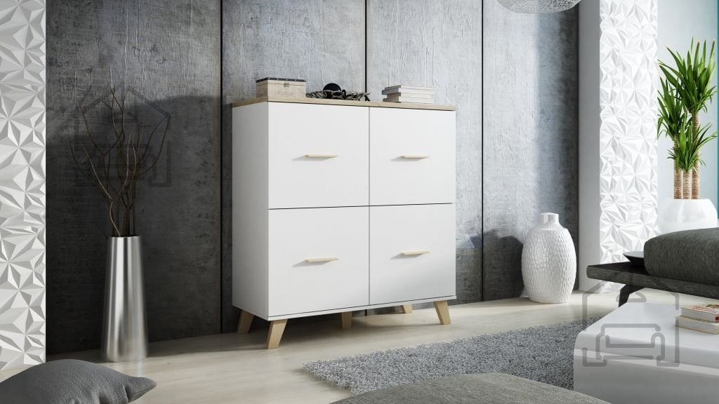 Komoda Lotta 110 cm 4D ima štiri vrata, ki omogočajo dobro organizacijo notranjega prostora. Za vrati se skriva dovolj prostora za shranjevanje tekstila, dokumentov, posode ali drugih gospodinjskih predmetov. Kombinacija zaprtih površin omogoča, da prostor ostane urejen in vizualno čist, saj so vsi predmeti varno pospravljeni. Komoda je primerna za uporabo v različnih prostorih – v dnevni sobi kot del pohištvene kompozicije, v jedilnici kot shranjevalna omarica ali v predsobi kot praktična rešitev za odlaganje drobnih predmetov.