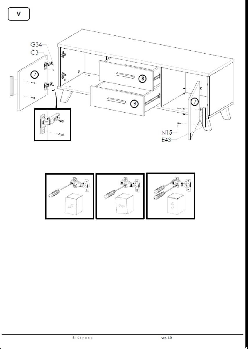 Mat površine pohištva so enostavne za čiščenje in odporne proti prstnim odtisom, kar omogoča dolgotrajno ohranjanje estetskega videza. Lesene noge zagotavljajo stabilnost, hkrati pa omogočajo, da se pod komodo z lahkoto dostopa s sesalnikom ali krpo. Zaradi premišljene višine in širine komode je primerna za televizorje različnih velikosti, njena zgornja plošča pa nudi dovolj prostora tudi za dekorativne dodatke, npr. vaze, knjige ali okvirje s fotografijami.