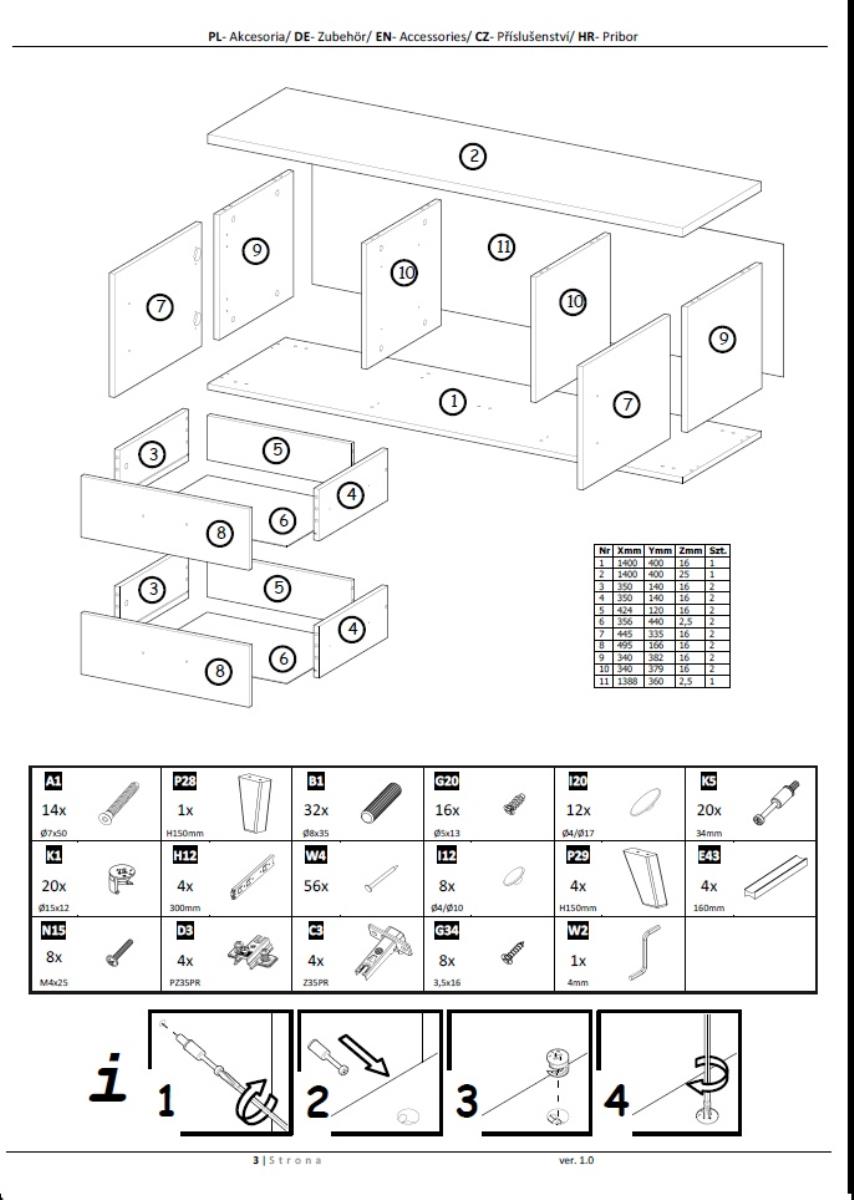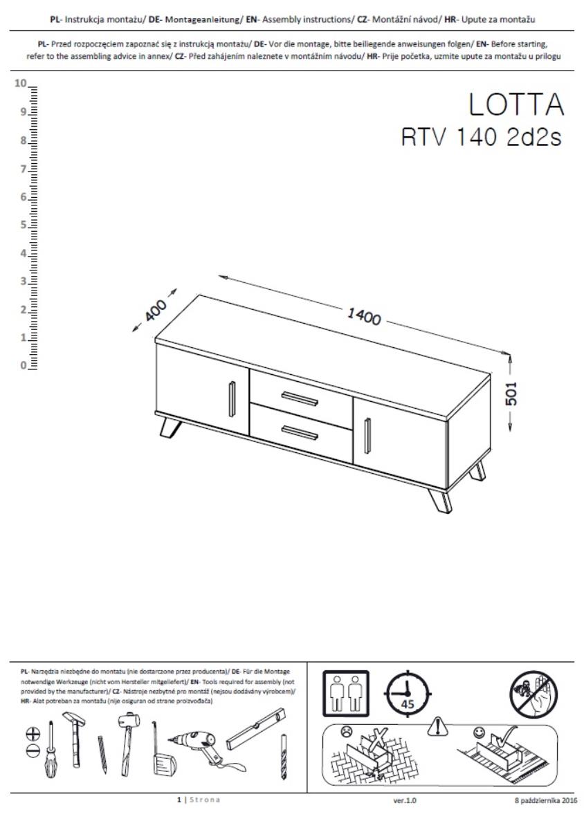Model Lotta 140 cm 2D2S je zasnovan tako, da omogoča preprosto organizacijo. Dve zaprti omarici z vrati in dva praktična predala ponujata dovolj prostora za shranjevanje daljinskih upravljalnikov, kablov, medijskih naprav ali drugih dodatkov. Zaradi višine nogic 15 cm je prostor pod komodo enostavno dostopen za čiščenje, kar prispeva k urejenemu videzu prostora. Mat površine preprečujejo vidnost prstnih odtisov, zato komoda ohranja brezhiben videz tudi pri pogosti uporabi.