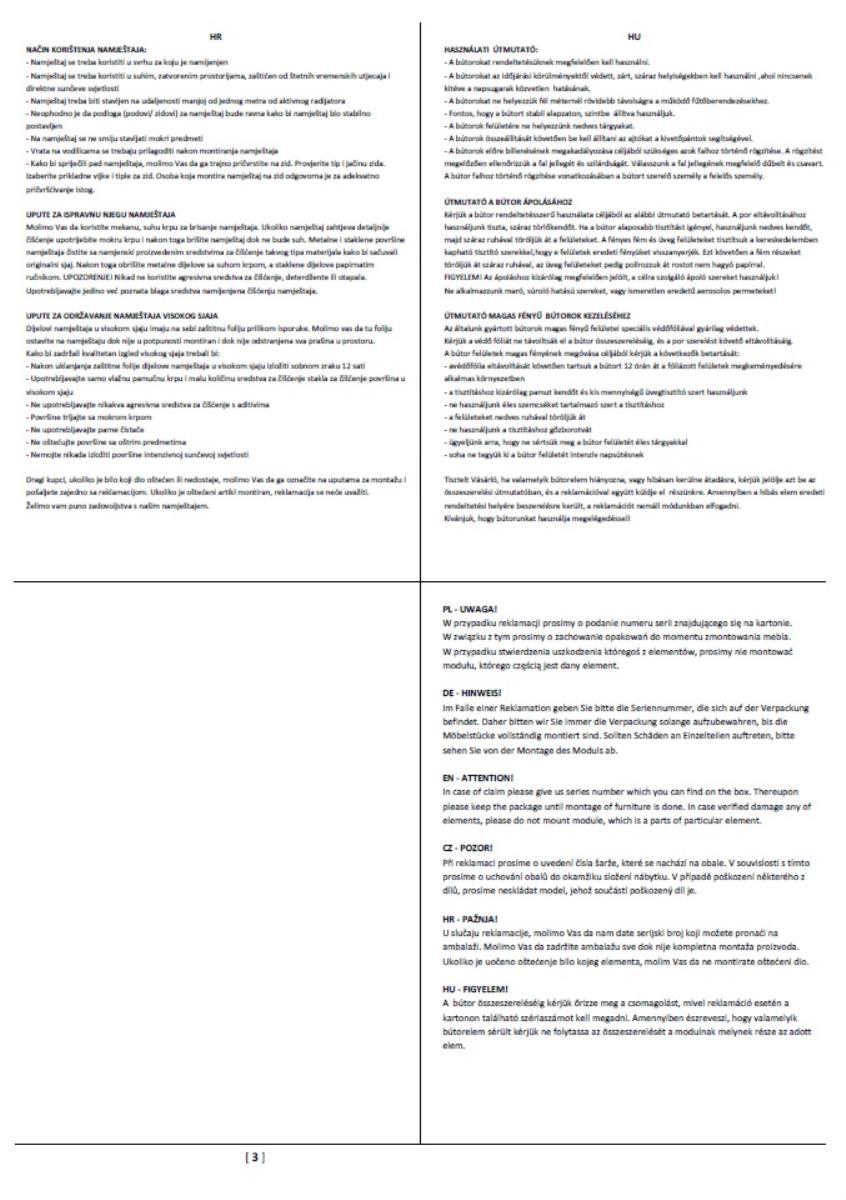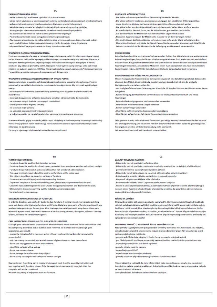 Mat površine iz ivernice se enostavno čistijo z mehko, rahlo vlažno krpo. Površina je odporna na običajne madeže, zato je omara primerna tudi za vsakodnevno uporabo v prostorih, kjer je več gibanja. Leseni deli, obdelani v odtenku hrasta sonoma, ohranjajo svoj videz dolgo časa, če se jih neguje z blagimi čistilnimi sredstvi brez močnih topil.