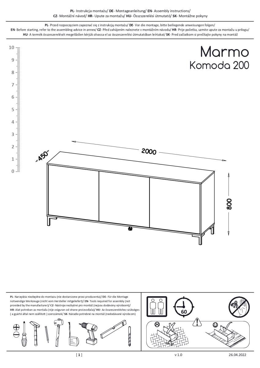 Mat laminirana plošča 200×45×80,5 cm: komoda Marmo KOM200/3d – Halmar.