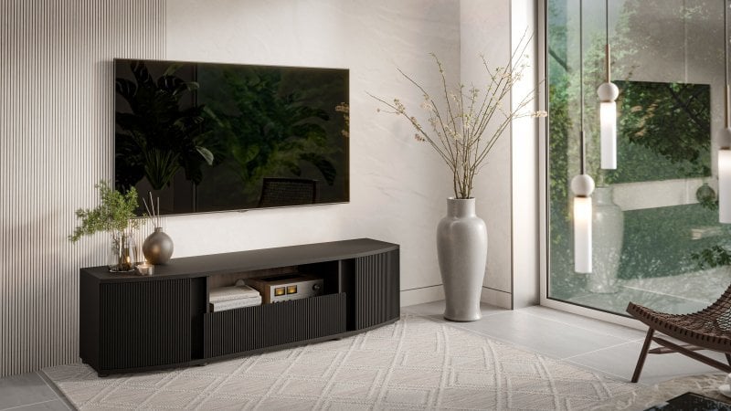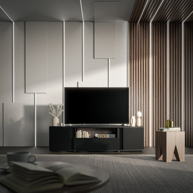 TV komoda Michelle je idealna izbira za sodobne dnevne sobe, kjer prevladujejo čiste linije in nevtralne barve. Odlično se poda k svetlim stenam in mehkim tekstilom, prav tako pa dopolnjuje industrijski slog s kovinskimi detajli ali rustikalno vzdušje z naravnimi materiali. Njen dizajn omogoča, da jo uporabite kot osrednji kos v prostoru ali kot del večjega sestava pohištva.