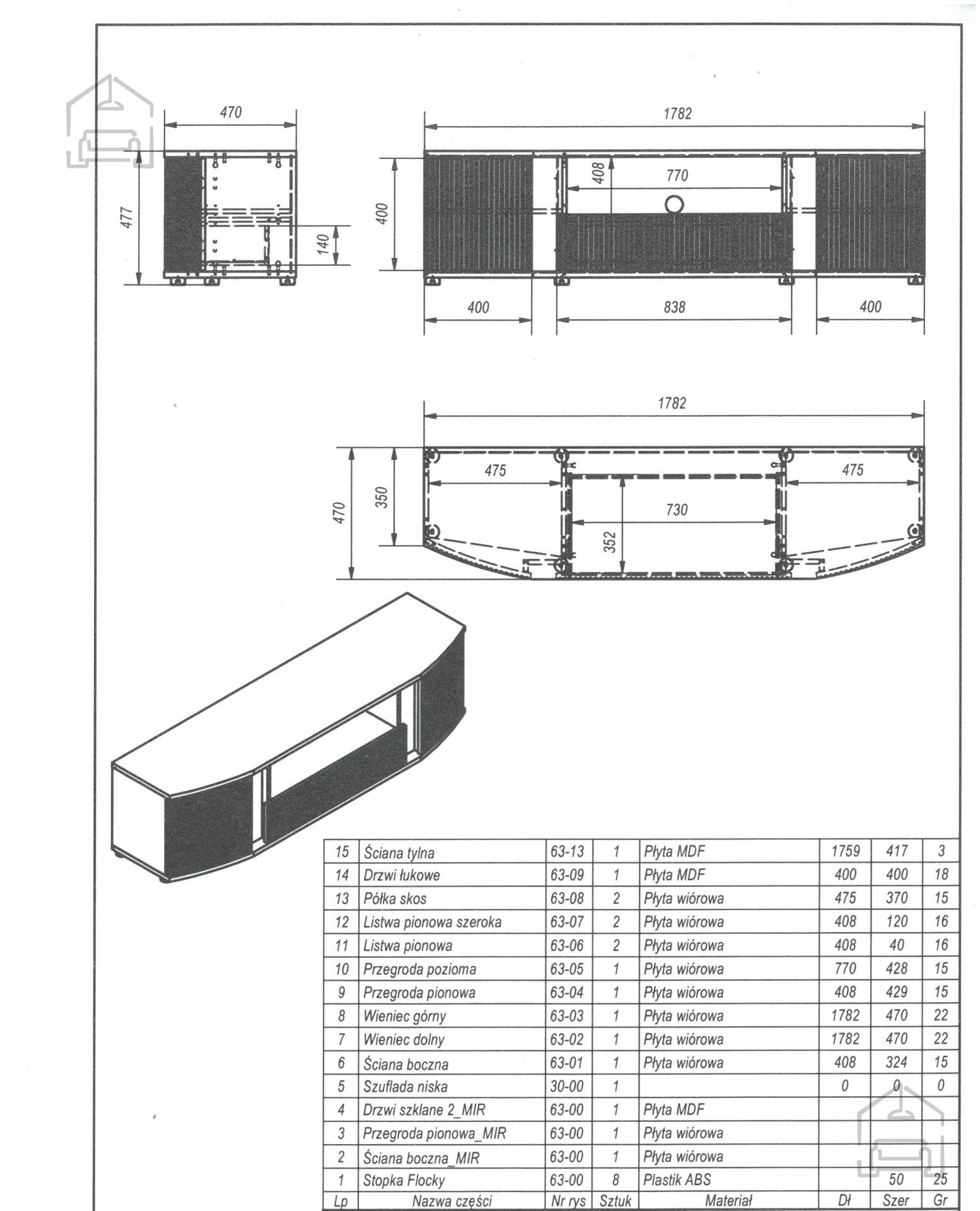 Ohišje komode je izdelano iz 16 mm debele laminirane iverne plošče, ki zagotavlja stabilnost in odpornost na vsakodnevno uporabo. Fronte so prav tako iz 16 mm laminirane MDF plošče, kar daje pohištvu bolj dovršen videz in trpežnost. Površina je gladka, enostavna za čiščenje in odporna proti madežem, kar omogoča dolgotrajno ohranitev prvotnega videza.