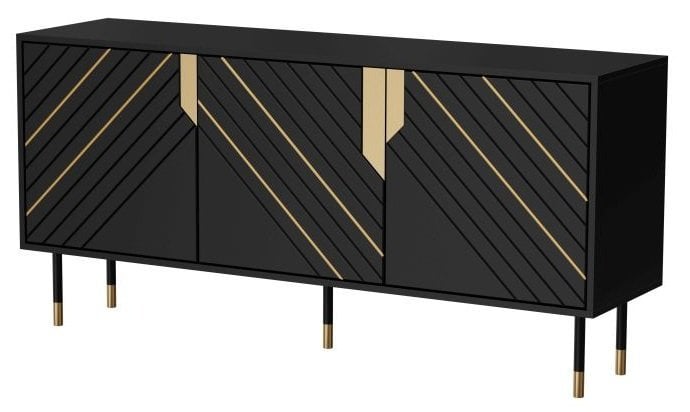 Laminirana plošča in črna mat MDF s poudarki v zlati barvi: komoda Mountain 150 cm 3D – Halmar.