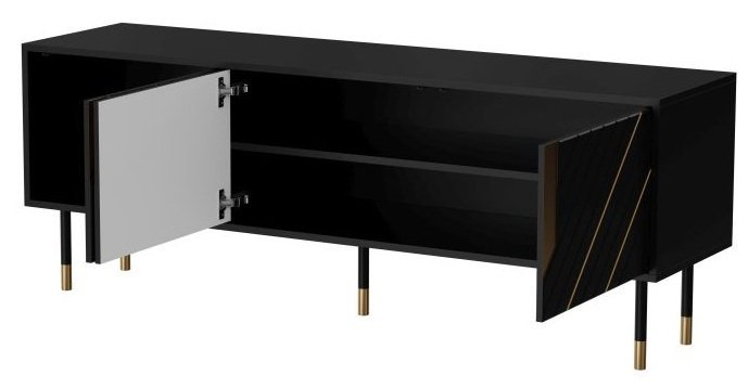 Kovinsko podnožje in črno-zlati detajli: TV komoda Mountain 150 cm 3D – Halmar.