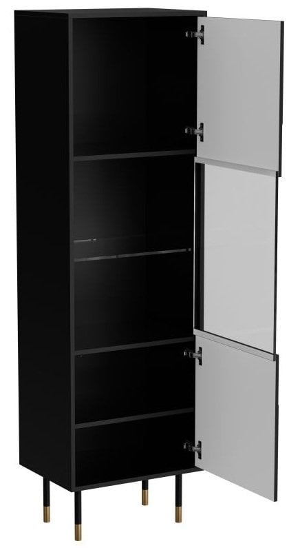 Vitrina Mountain 54 cm – Halmar združuje eleganco, kakovostne materiale in praktične rešitve. Njena prefinjena barvna kombinacija črne in zlate omogoča, da se popolnoma zlije z modernimi prostori ali pa postane izstopajoč poudarek v klasičnem ambientu. Zahvaljujoč premišljenim dimenzijam in funkcionalni zasnovi je odlična izbira za vse, ki želijo estetsko in prostorsko učinkovito rešitev za shranjevanje in razstavljanje predmetov v svojem domu.
