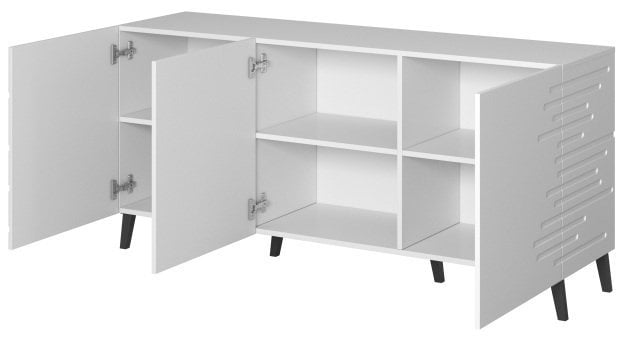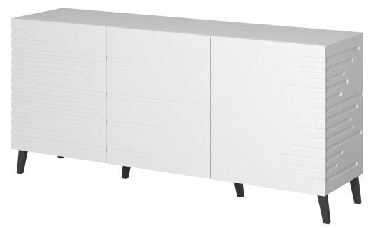 Komoda Nova blagovne znamke Halmar predstavlja sodoben kos pohištva, ki s svojo minimalistično zasnovo in univerzalno barvno kombinacijo dopolni različne stile notranje opreme. Z dimenzijami 155x40x75 cm nudi ravno pravo razmerje med prostornostjo in vizualno lahkotnostjo, zato se odlično obnese tako v dnevni sobi kot v spalnici ali predsobi. Njena bela, mat površina ustvarja občutek svežine in svetlobe, kar prostoru doda urejen, sodoben videz.