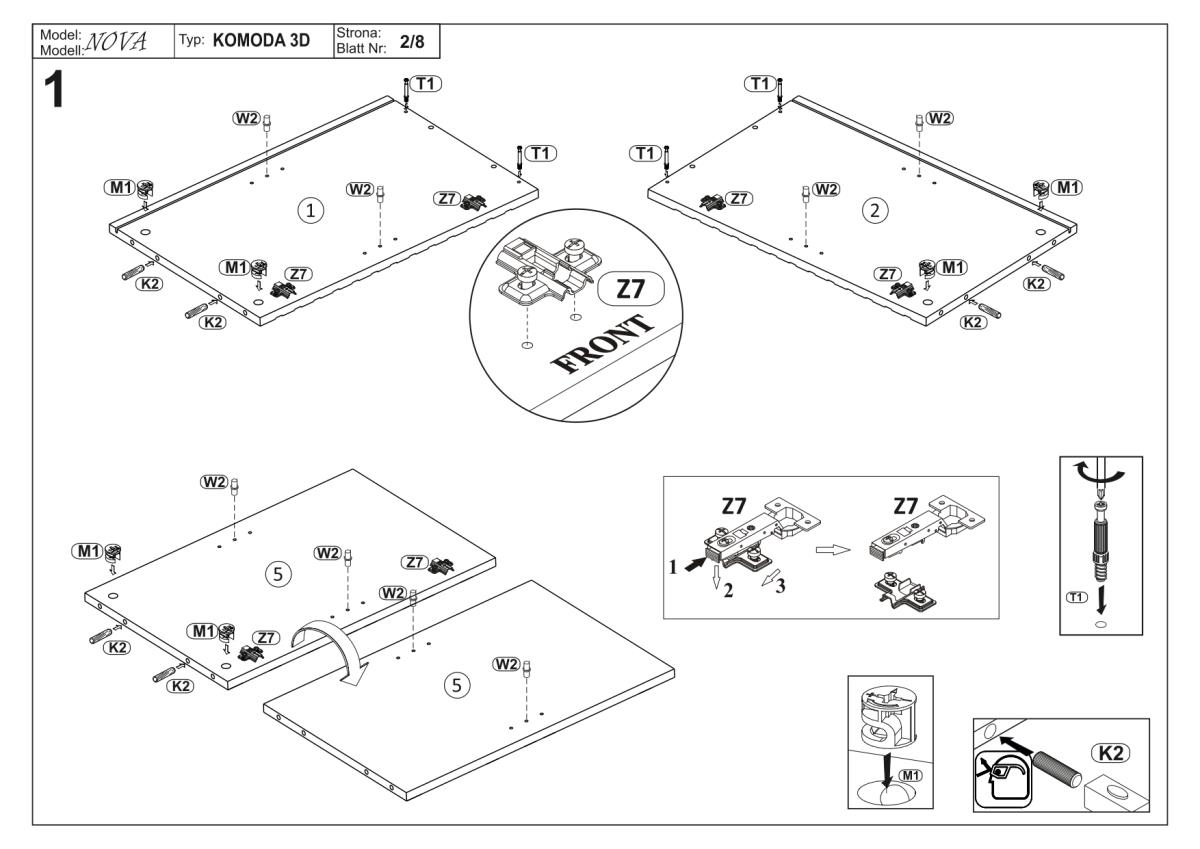 Komoda je izdelana iz kakovostnih plošč MDF debeline 16/18 mm, kar zagotavlja stabilnost in dolgo življenjsko dobo. Površina je natančno obdelana, robovi pa so zaščiteni z ABS trakom, ki ščiti pred poškodbami in vlago. MDF plošče v kombinaciji z ABS robovi omogočajo gladek videz brez ostrih prehodov, kar pripomore k celoviti estetiki pohištva.