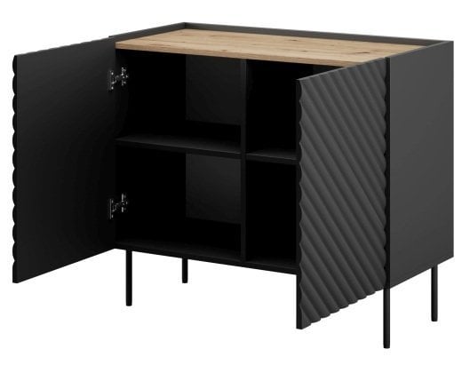 Komoda Onda 2D – Halmar združuje sodobno estetiko s funkcionalnostjo in kakovostno izdelavo. Njena uravnotežena kombinacija črne barve ter dekorja hrasta artisan ustvarja izrazit kontrast, ki prostoru doda toplino in prefinjenost. Z dimenzijami 98x45x85 cm ponuja dovolj prostora za shranjevanje, hkrati pa ne zavzame preveč prostora v dnevni sobi, spalnici ali predsobi. Izdelek je izdelan v Poljski, v tovarni Halmar, kar zagotavlja preverjeno kakovost in natančno obdelavo.