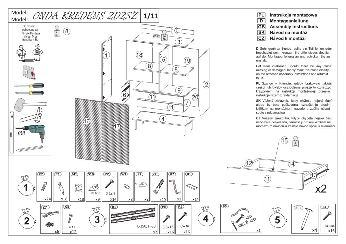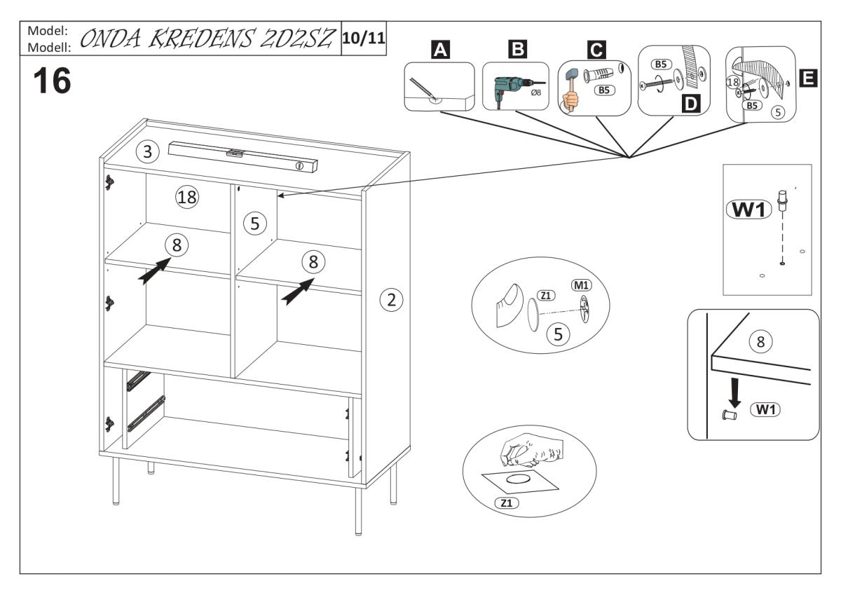 Komoda Onda 2D je opremljena s tečaji z mehanizmom mehkega zapiranja, kar preprečuje nenadne udarce vrat in podaljšuje življenjsko dobo pohištva. Tak sistem povečuje tudi uporabniško udobje, saj vrata zapirajo tiho in brez napora. Dvovratna zasnova omogoča dobro preglednost notranjosti, medtem ko prostorne police nudijo dovolj prostora za shranjevanje dokumentov, tekstila ali dekorativnih predmetov.