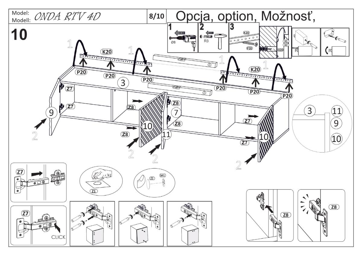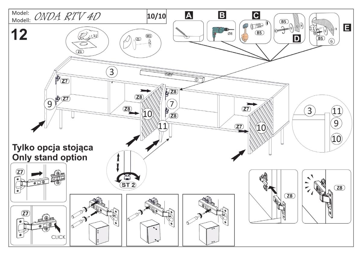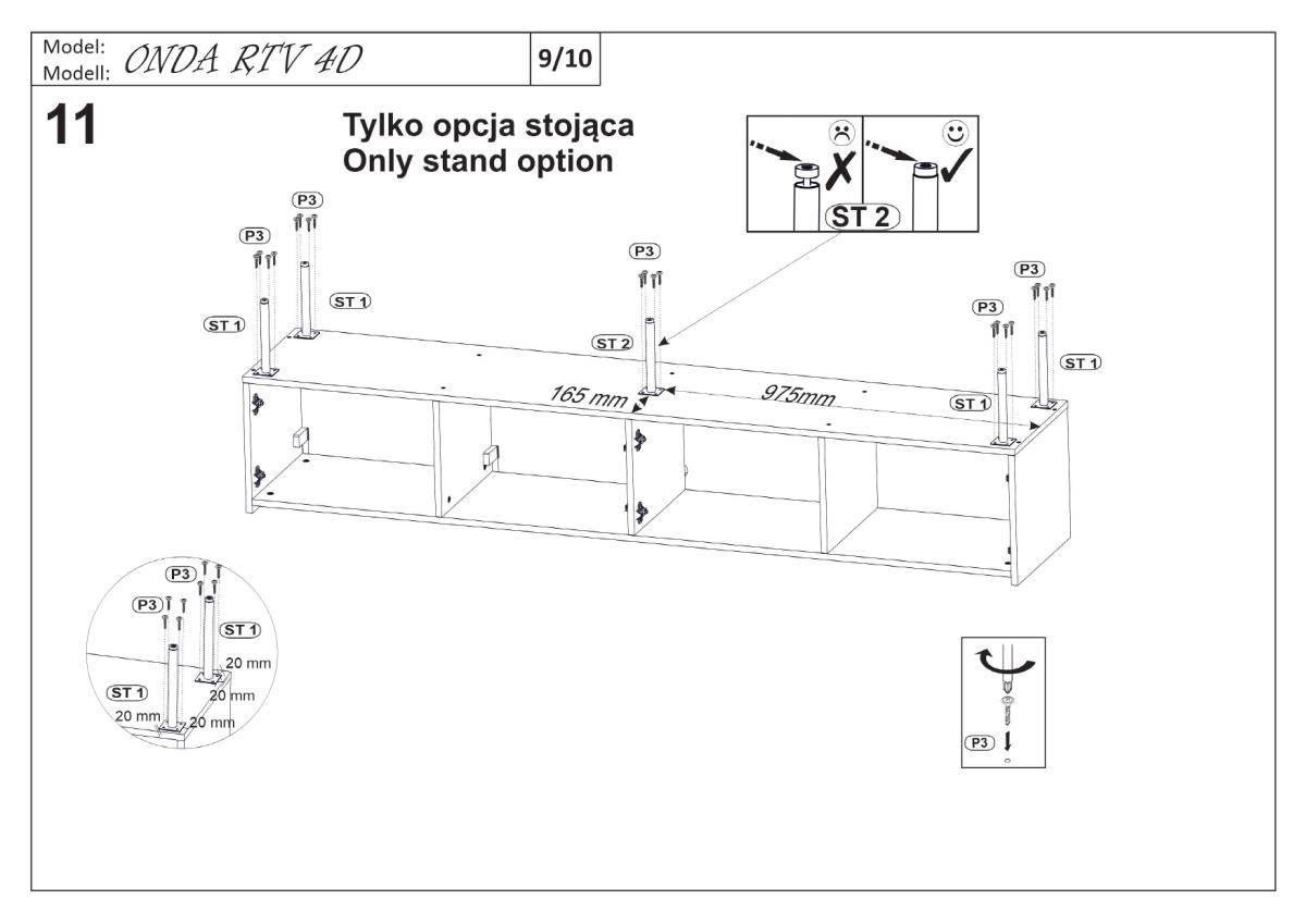 Onda 4D je večnamenska TV komoda, ki jo lahko postavite na tla ali pa jo namestite na steno. V stoječi različici meri 54x200x40 cm, medtem ko viseča različica meri 35x200x40 cm. Takšna prilagodljivost omogoča, da izberete način postavitve glede na razpoložljiv prostor in slog notranje opreme. Viseča izvedba vizualno razbremeni prostor in ustvari občutek lahkotnosti, stoječa pa nudi dodatno stabilnost in klasičen videz.