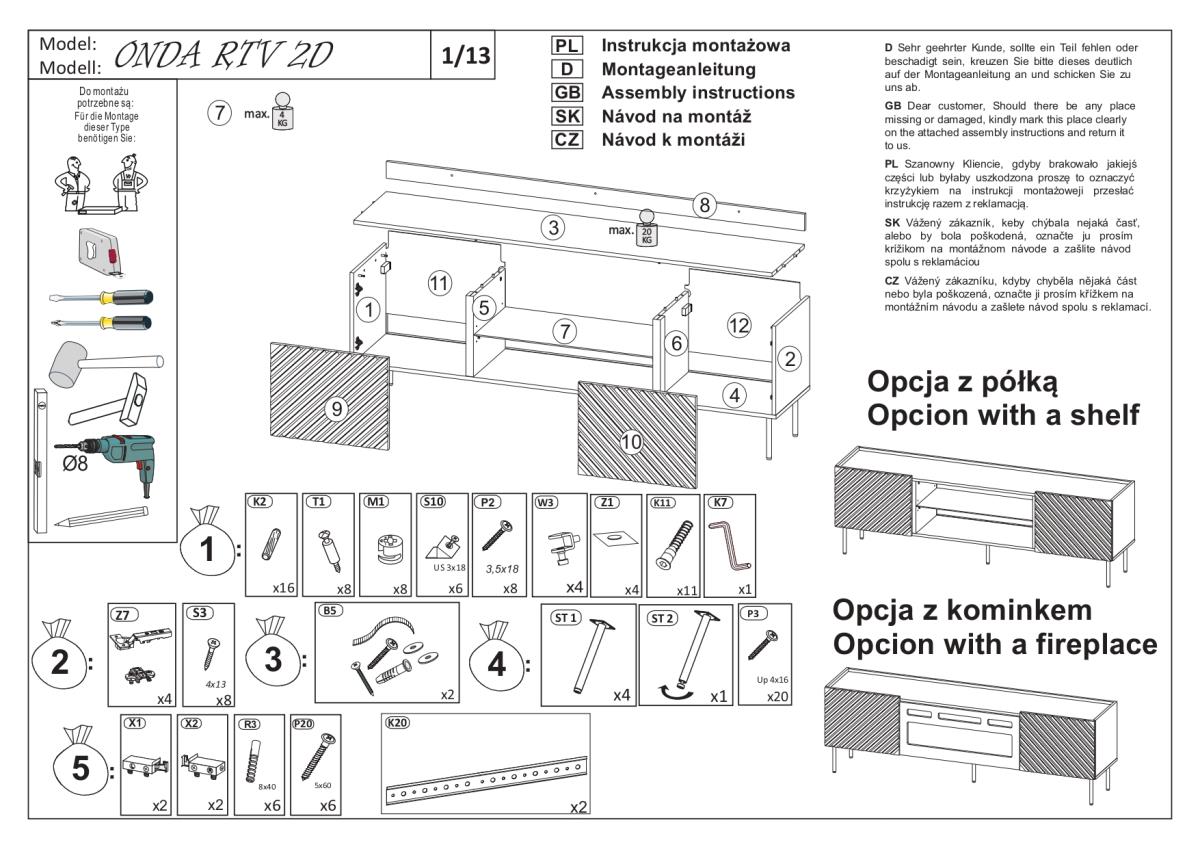 TV komoda Onda EF je zasnovana kot TV omarica z možnostjo kamina, kar pomeni, da lahko po želji dodate električni vložek in ustvarite prijetno vzdušje v dnevni sobi. Njena notranja razporeditev omogoča shranjevanje multimedijskih naprav, kablov, daljinskih upravljalnikov ali drugih predmetov, ki jih želite imeti pri roki. Fronte segajo nad zgornji venec, kar nadomešča klasične ročaje in dodatno poudari minimalistično linijo komode.