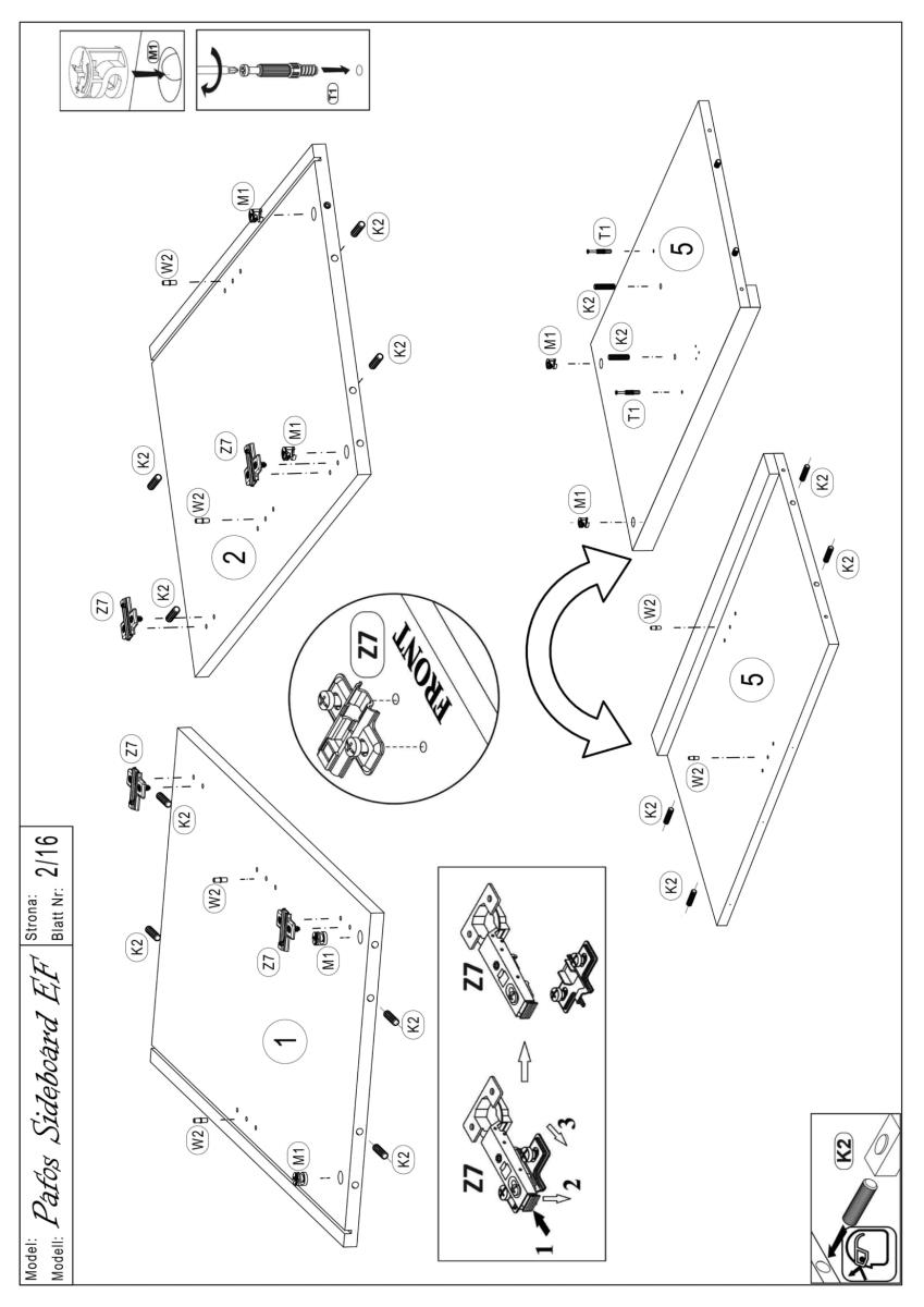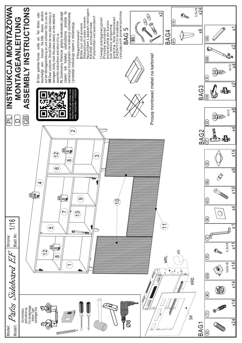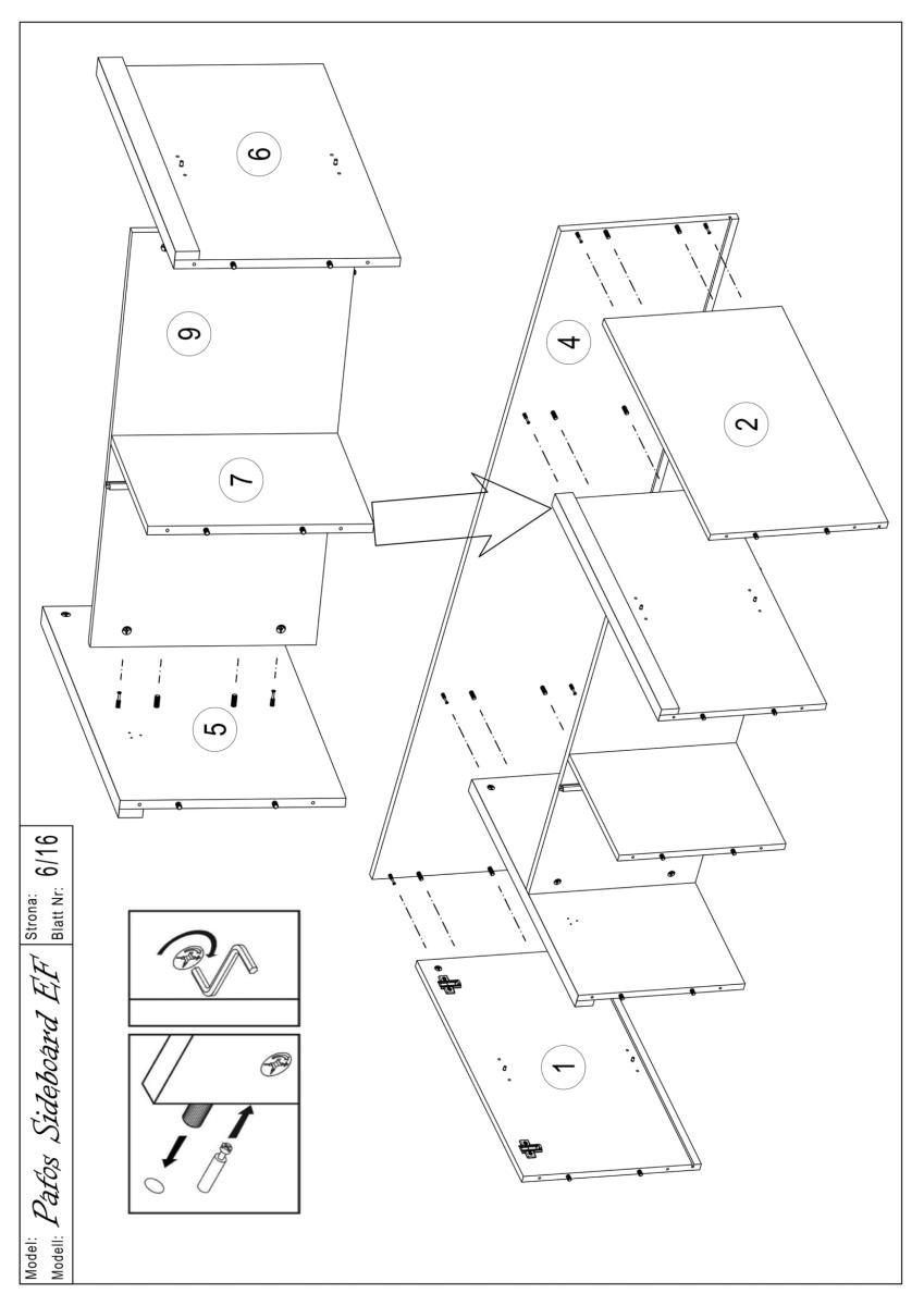 Komoda je izdelana v tovarni Halmar in prihaja iz Poljske, kar zagotavlja evropske standarde kakovosti. Ohišje je iz mat laminirane plošče debeline 16 mm, ki je odporna na običajne obremenitve in enostavna za čiščenje. Sprednje plošče so iz MDF materiala, laminirane in prevlečene s PVC folijo debeline 16 mm, z dekorativnimi utori, ki dodajo izdelku globino in vizualno dinamiko. Robovi so zaščiteni z ABS trakovi, kar povečuje odpornost na udarce ter preprečuje luščenje materiala skozi čas.