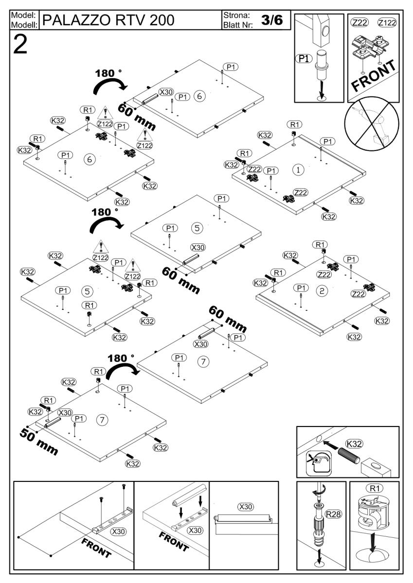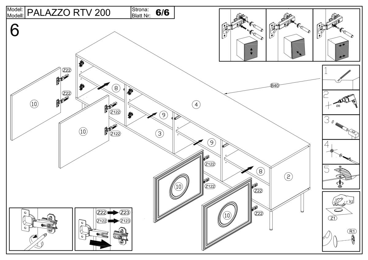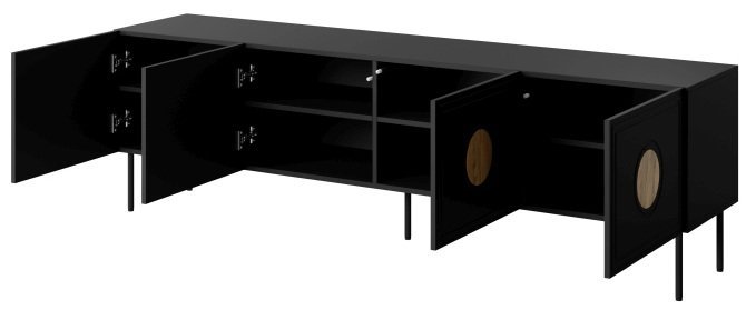 TV komoda Palazzo je opremljena s sodobnim sistemom PUSH‑CLICK, ki omogoča odpiranje vrat brez ročajev. Dovolj je rahel pritisk na površino vrat, da se odprejo – mehanizem deluje tiho in tekoče, kar povečuje udobje uporabe. Takšen način odpiranja ohranja čiste linije sprednje površine in poudarja minimalistično estetiko. Vse štiri omarice so prostorne in ponujajo veliko prostora za shranjevanje DVD‑jev, igralnih konzol, daljinskih upravljalnikov in drugih dodatkov, ki jih želite imeti pri roki, a ne na očeh.