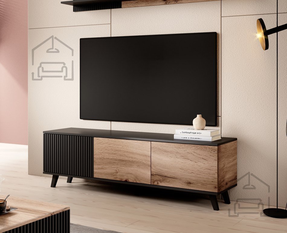 Elegantna kombinacija hrasta votan in črne barve: dnevna soba Random – Halmar.
