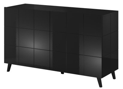 Črna sijajna površina in elegantna frezirana MDF konstrukcija: komoda Reja KOM2D – Halmar.