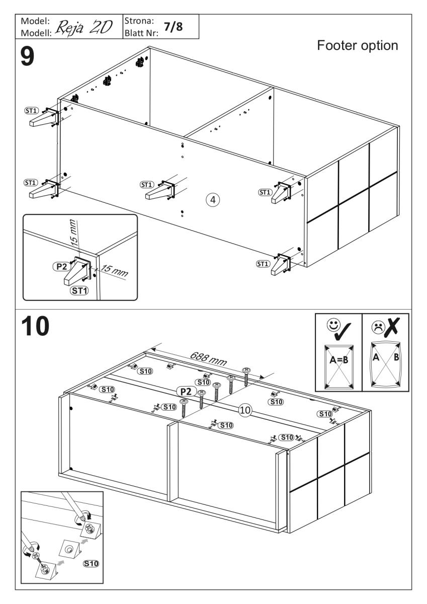 Model Reja KOM2D omogoča dve izvedbi spodnjega dela – z nogicami ali s polnim podnožjem. Črne plastične nogice vizualno razbremenijo volumen pohištva, saj ustvarijo vtis lebdenja nad tlemi, medtem ko podnožje daje komodi bolj monolitno, stabilno podobo. Poseben poudarek je na osvetlitvi – vzdolž podnožja je nameščen lepilni svetlobni trak, ki dodaja prijeten ambientalni učinek in hkrati poudari sijaj črne površine.