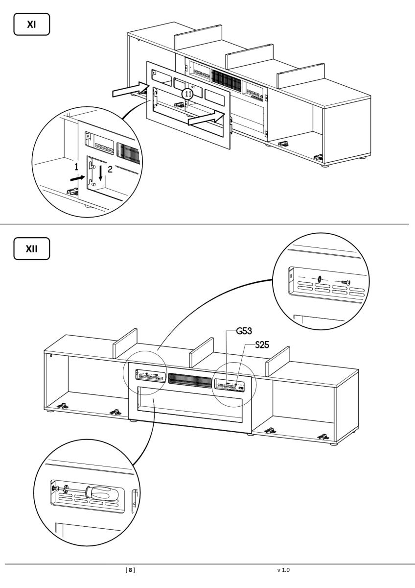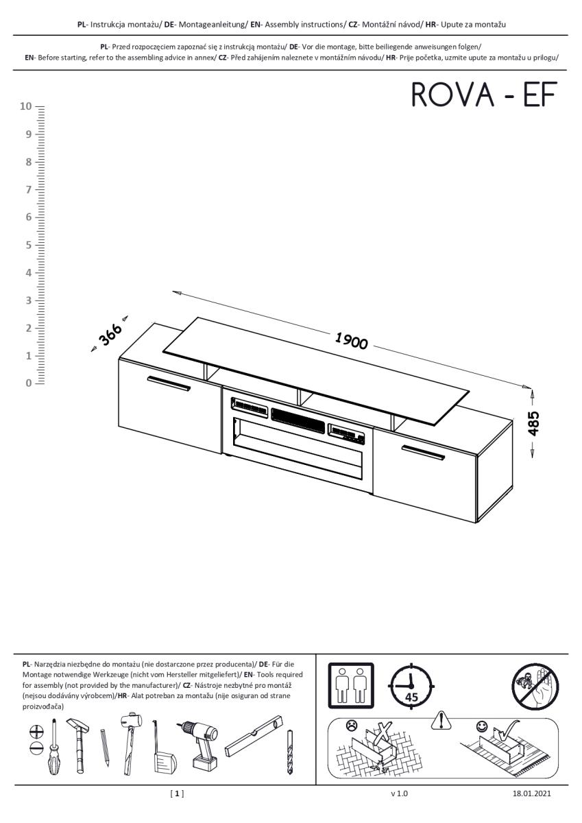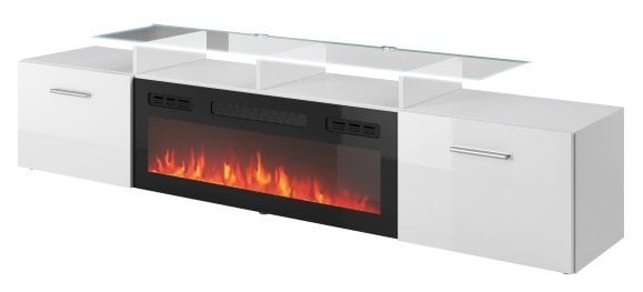 TV komoda Rova EF je zasnovana tako, da omogoča različne načine uporabe. Poleg klasične postavitve pod televizor je mogoče vgraditi tudi električni kamin (model CAMA-KOMINEK, ki se naroča posebej). Ta možnost spremeni komodo v osrednji element dnevne sobe, ki združuje toplino in sodobno tehnologijo. Takšna prilagodljivost je idealna za vse, ki želijo ustvariti prijetno, a funkcionalno bivalno okolje.