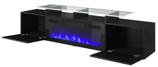 Črna mat eleganca in možnost vgradnje električnega kamina: TV komoda Rova EF – Halmar.