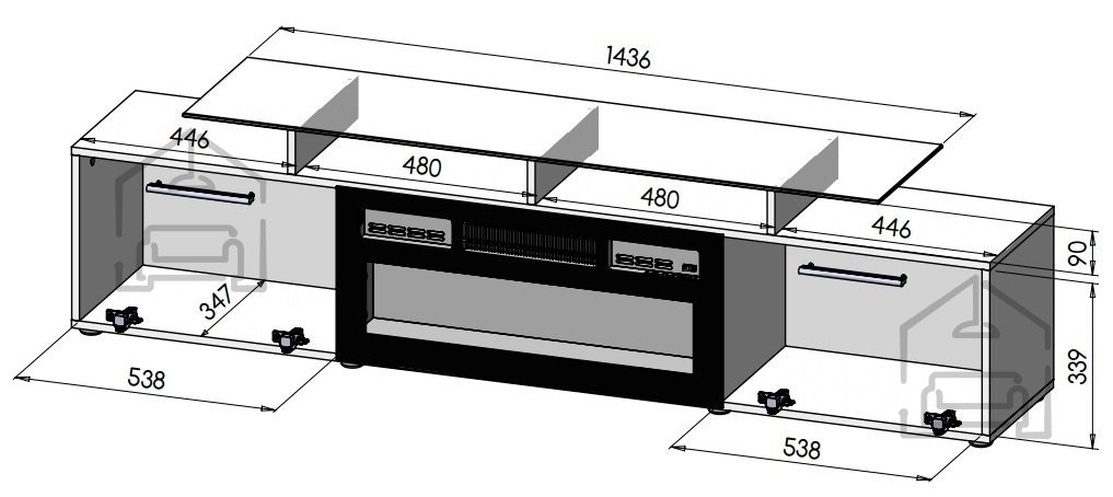 TV komoda Rova EF meri 190 × 37 × 48 cm, kar zagotavlja dovolj prostora za večje televizorje ter vse spremljevalne naprave, kot so sprejemniki, igralne konzole ali zvočni sistemi. Kljub svoji širini ostaja komoda vizualno lahkotna in se lepo prilega večini bivalnih prostorov.