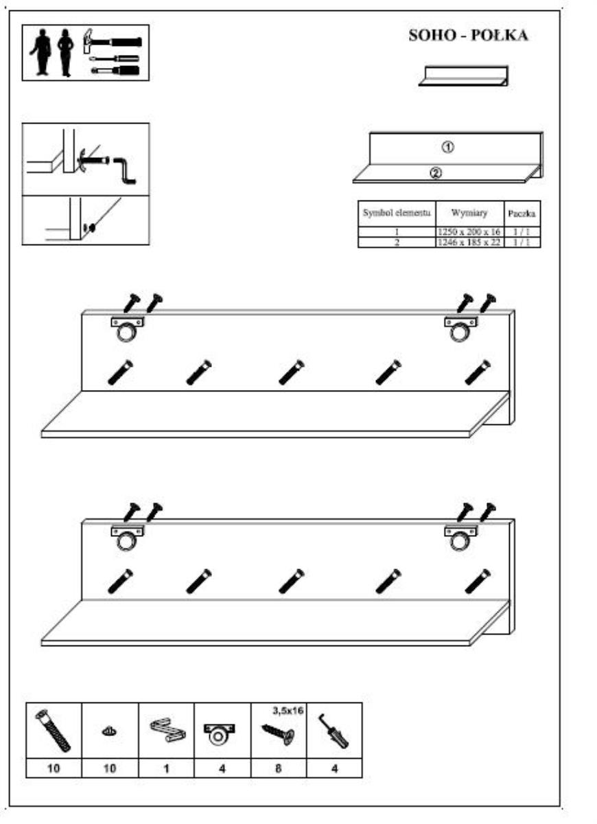 Komplet stenskih polic Soho S5 poljskega proizvajalca Halmar združuje sodoben videz, trdno konstrukcijo in praktično razporeditev prostorov za shranjevanje. S svojo barvo hrast sonoma se lepo ujema z različnimi notranjimi slogi, od svetlega skandinavskega do toplega rustikalnega videza. Police so izdelane iz kakovostne mat laminirane iverne plošče, ki je znana po svoji odpornosti proti praskam, enostavnem čiščenju in dolgi življenjski dobi. Mere kompleta so 125x20x20 cm, zato se police lepo prilegajo tudi manjšim prostorom, kjer je pomembna optimalna izraba stene.