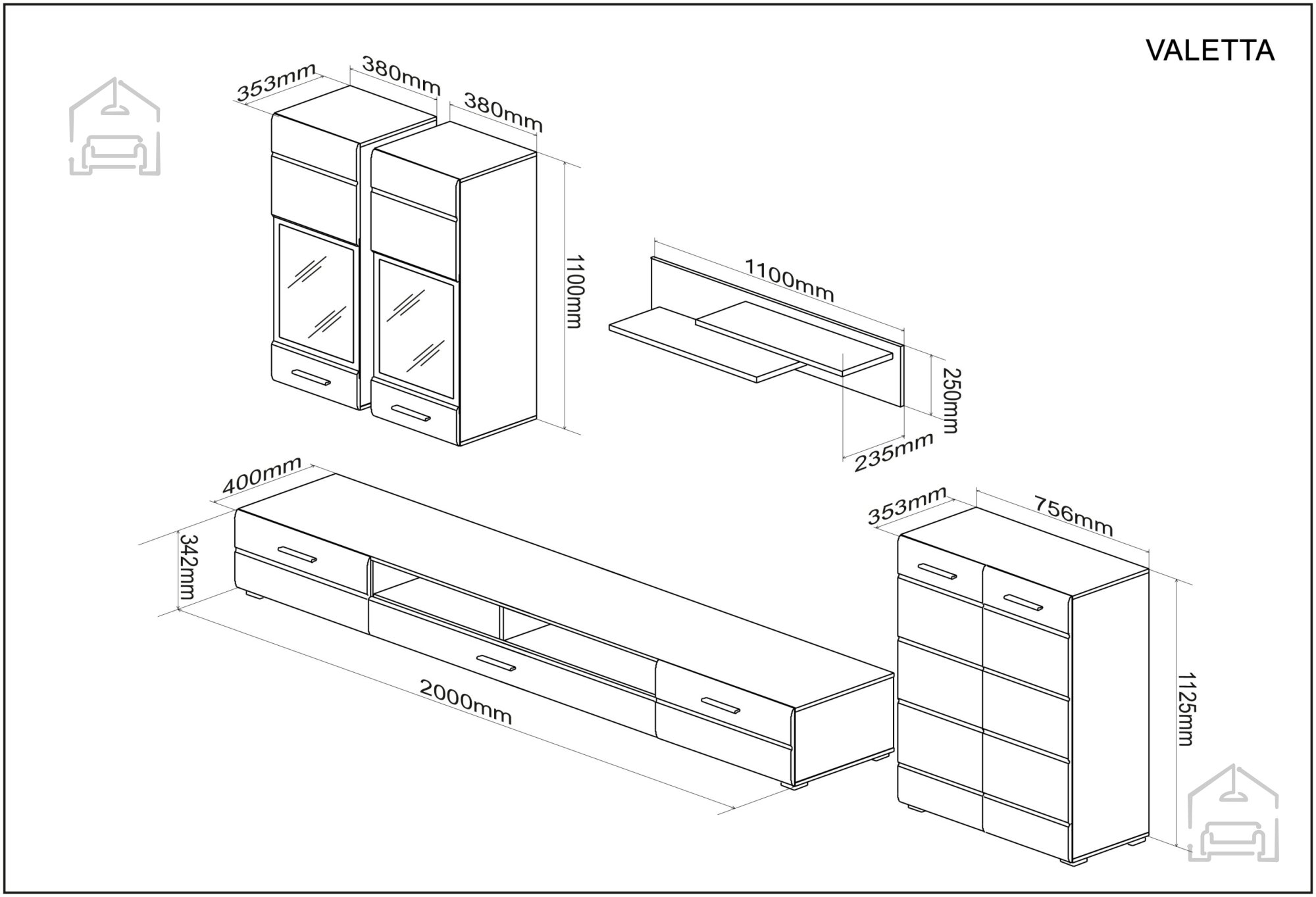 Dnevni regal Valetta je zasnovan kot del večjega kompleta pohištva, kar omogoča celovito ureditev dnevne sobe v enotnem slogu. Lahko ga dopolnite z nizkimi komodami, visečimi omaricami ali TV-elementi iz iste kolekcije. Zaradi univerzalne barve in preprostih linij se regal lepo ujema tudi z drugimi pohištvenimi kosi različnih proizvajalcev, zato ponuja veliko svobode pri oblikovanju prostora.