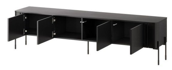 TV komoda Vera 190 cm – Halmar je odlična izbira za vse, ki iščejo eleganten, funkcionalen in trpežen kos pohištva. Črna barva, kovinske noge in sistem PUSH TO OPEN ustvarjajo sodoben videz, ki bo dolgo ostal v trendu. Zaradi premišljene zasnove in kakovostnih materialov je primerna tako za manjše kot večje dnevne prostore. Komoda Vera je dokaz, da lahko tudi preprost dizajn združuje estetiko, funkcionalnost in kakovost v popolno celoto.