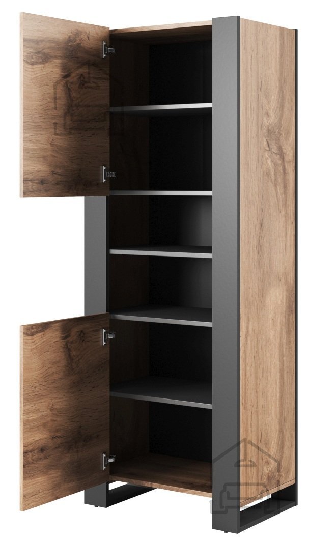 Regal Wood – Halmar je sodoben kos pohištva, ki združuje naravni videz hrasta votan z elegantnimi antracitnimi poudarki. S svojimi dimenzijami 65x40x170,5 cm ponuja ravno prav prostora za shranjevanje in razstavljanje dekorativnih predmetov, knjig ali vsakodnevnih potrebščin. Njegov minimalističen videz in kakovostna izdelava odražata značilno natančnost poljskega proizvajalca Halmar, ki je znan po funkcionalnih in estetsko dovršenih rešitvah za sodobne domove.