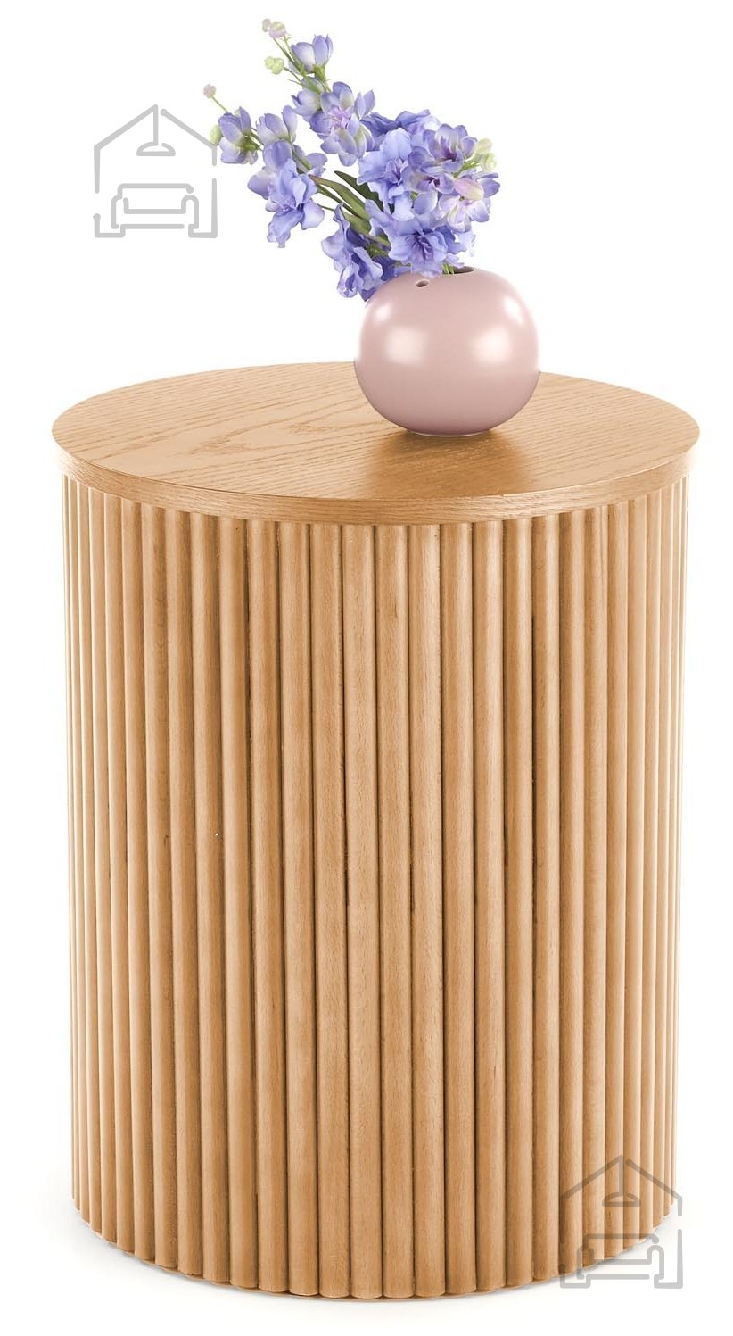 Okrogla plošča z dimenzijami fi 40 / 50 cm prinaša ravno pravšnjo površino za odlaganje manjših predmetov, pijač ali dekorativnih dodatkov. Zaradi kompaktnih mer se miza enostavno umesti tudi v manjše dnevne sobe, bralne kotičke ali spalnice, kjer lahko služi kot nočna mizica ali pomožna odlagalna površina.