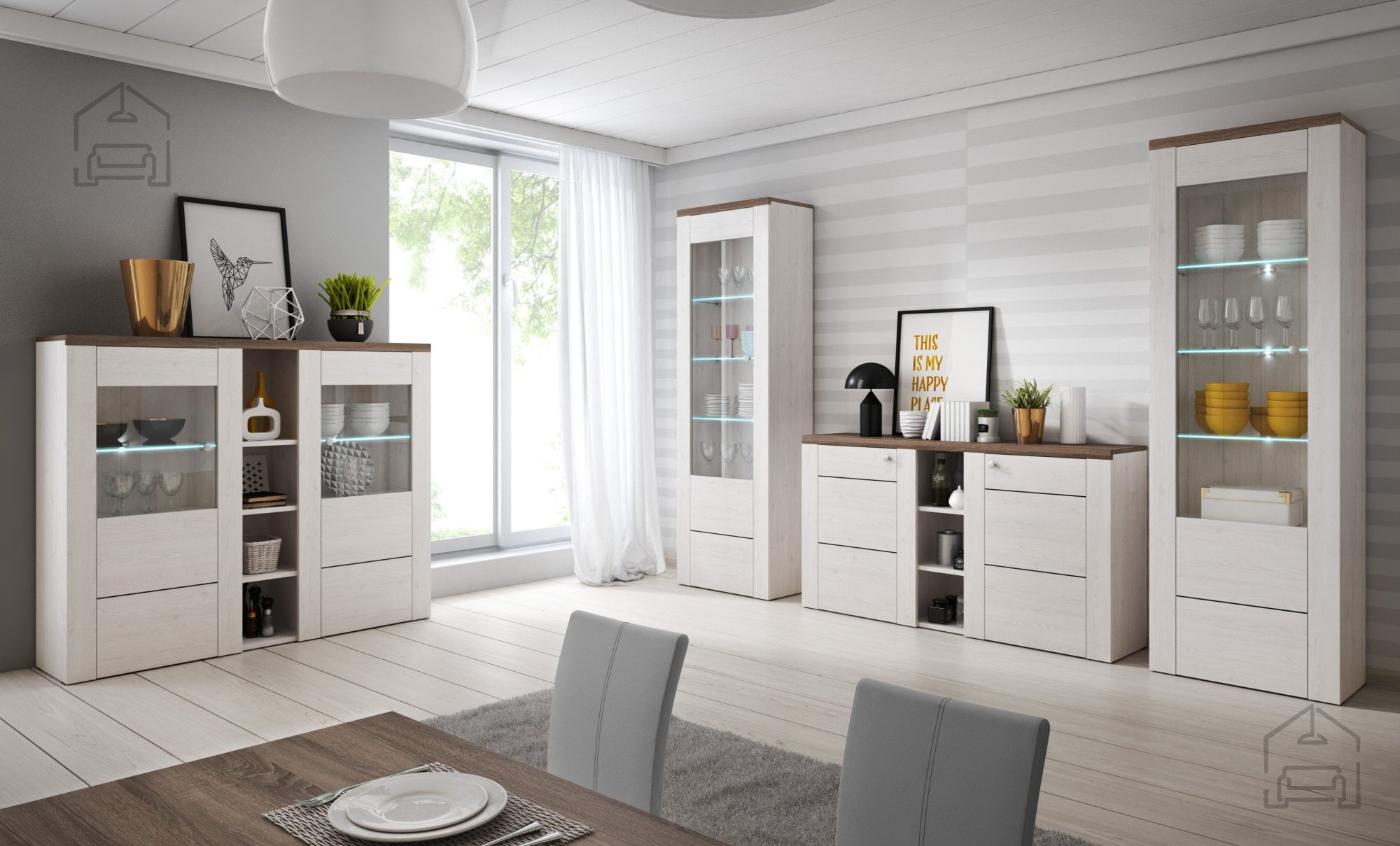 Ne zamudite priložnosti, da vaš dom obogatite z Larona kompletom. Njegova prilagodljivost, od elegantnih vitrin do praktičnih komod, omogoča, da se popolnoma prilagodi vašim potrebam. Opcija LED osvetlitve dodatno poudari njegovo edinstvenost in poskrbi za prijetno vzdušje v vsakem trenutku.