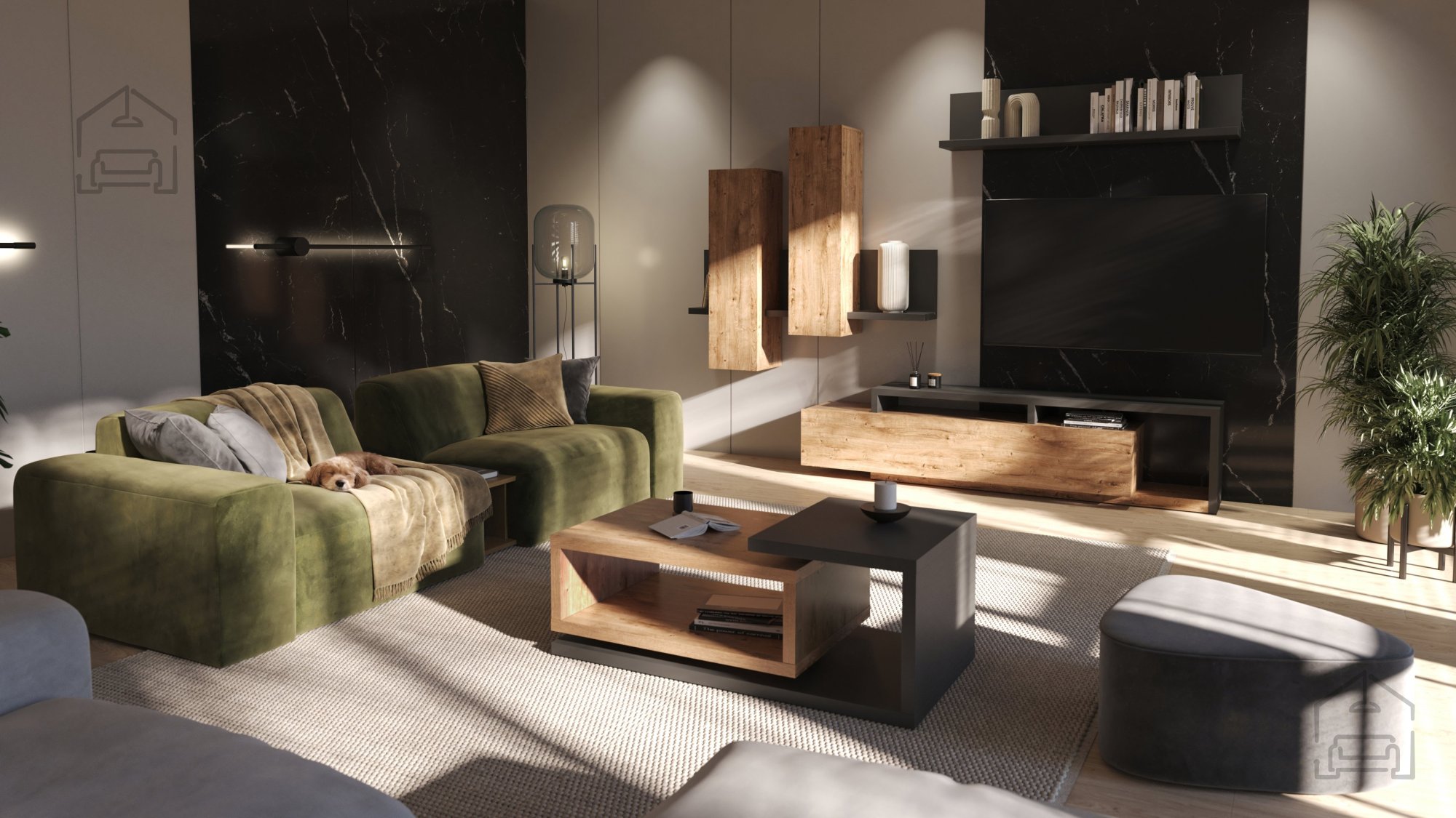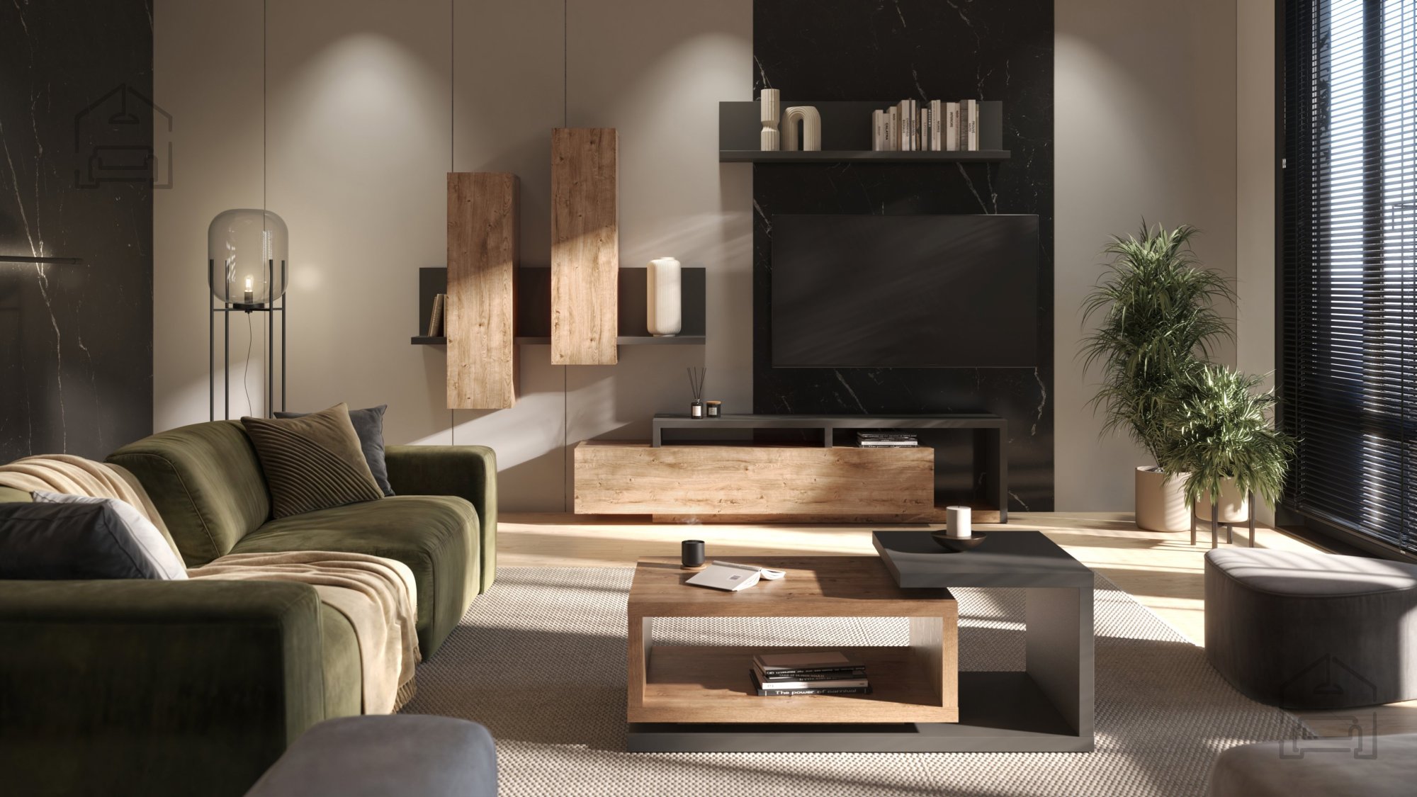 Posebnost klubske mize Bota je barvna kombinacija antracit in ribbec hrast, ki ustvarja topel, a hkrati sodoben kontrast. Temno siva osnova poudari naravne lesne tone, kar prostoru doda občutek topline in prefinjenosti. MDF plošče so obdelane tako, da površina ostane gladka in odporna proti vsakodnevni uporabi, obenem pa ohranja naraven videz lesa. Zaradi teh lastnosti miza ni le estetsko dovršena, ampak tudi praktična za vsakodnevno uporabo.