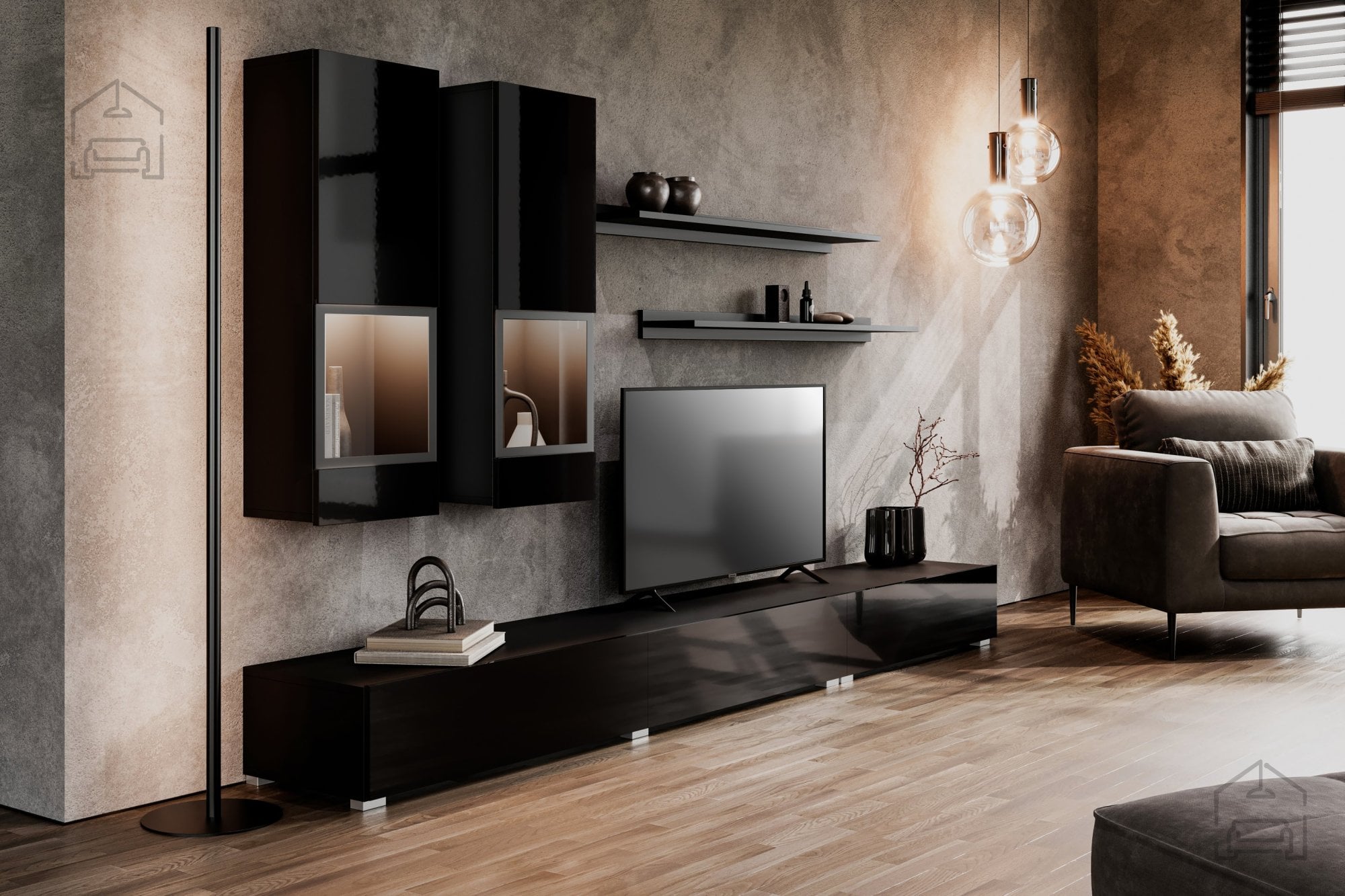 Dnevna soba Athens je na voljo v dveh čudovitih barvah: črna supermat in črna sijaj. Ta kombinacija barv bo vašemu prostoru dodala sofisticiranost in moderni pridih. Črna barva je izjemno vsestranska in se odlično poda k različnim dekorativnim elementom, kar omogoča enostavno usklajevanje z ostalimi kosi pohištva.