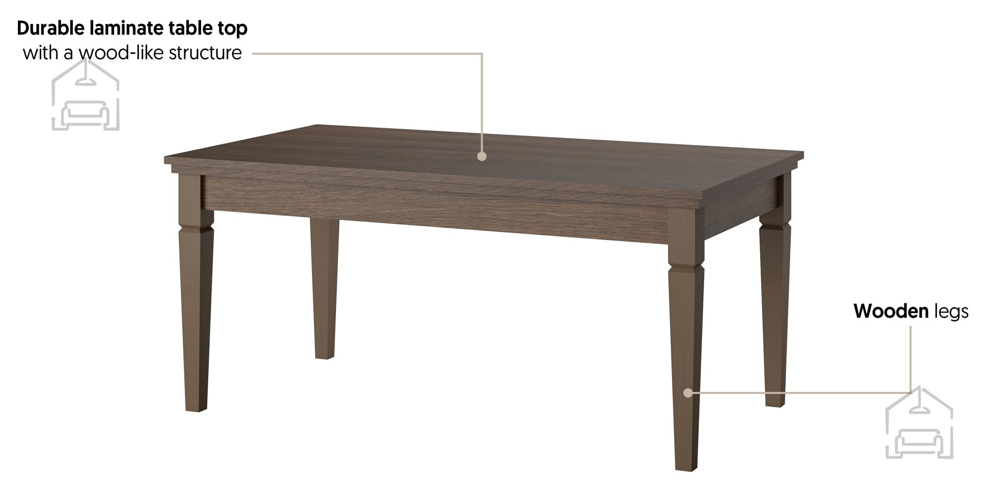 Miza Evora se zaradi svojega umirjenega barvnega tona in preprostih linij zlahka vključi v različne tipe notranje opreme. V kombinaciji z mehkim kavčem in tekstilnimi dodatki v toplih tonih ustvari prijeten, domač ambient. V modernih interierjih s svetlimi tlemi ali minimalističnim pohištvom pa deluje kot subtilen poudarek, ki povezuje prostor in doda pridih naravne elegance.