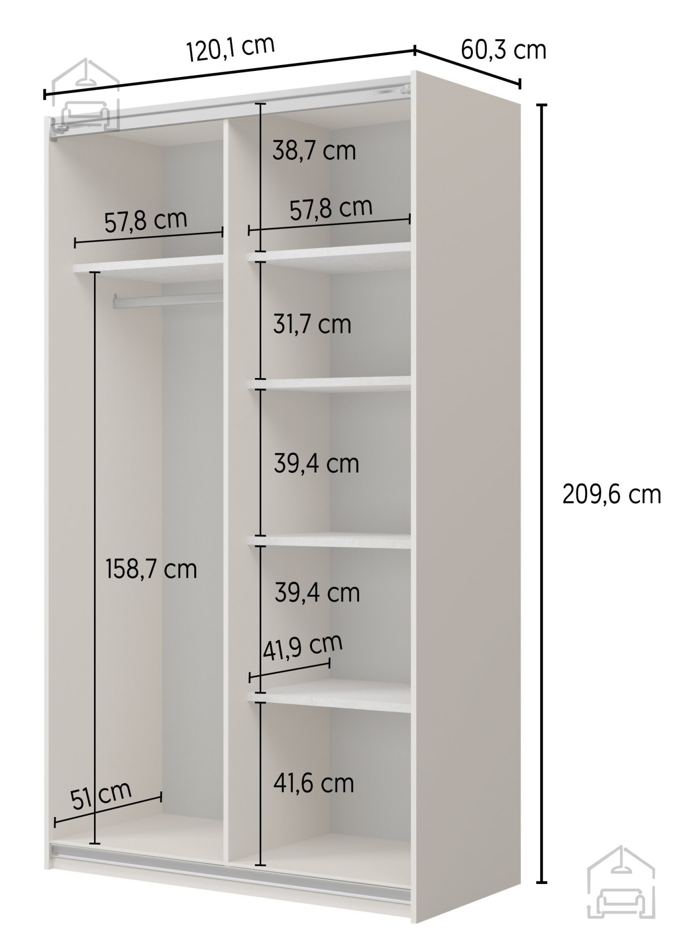Laminirana plošča 120x60x210 cm: garderobna omara z drsnimi vrati Cube 120 – Helvetia meble.