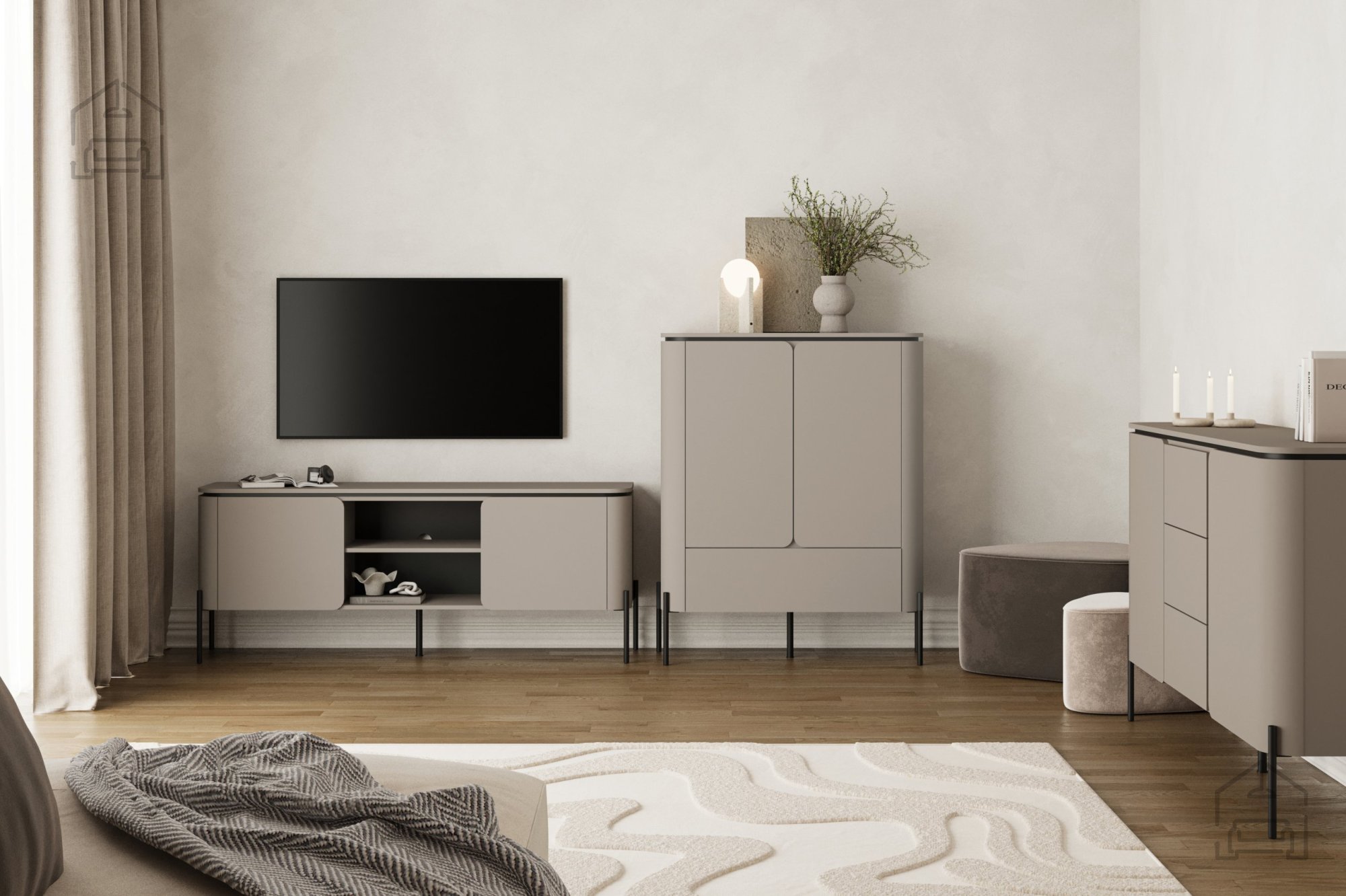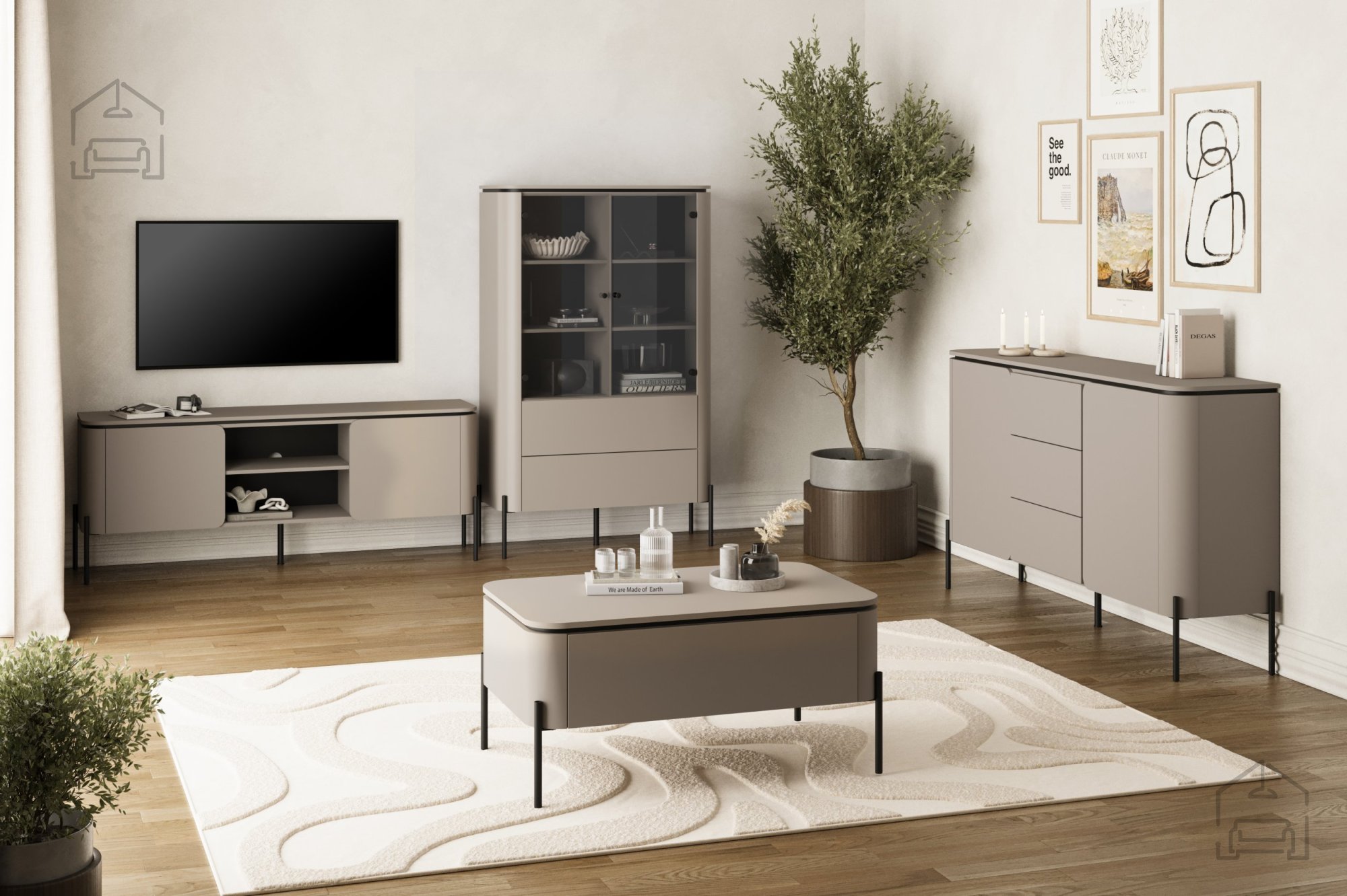 Barva congo je sodobna interpretacija toplih lesenih tonov, ki v prostor vnesejo prijetno domačnost. Kombinacija z mat črnimi nogami ustvarja eleganten kontrast, ki poudari značaj komode. Zaradi umirjene barvne sheme se Bello zlahka kombinira z drugimi pohištvenimi elementi v dnevni sobi – z lesenimi mizicami, svetlimi tekstilnimi površinami ali kovinskimi dodatki.