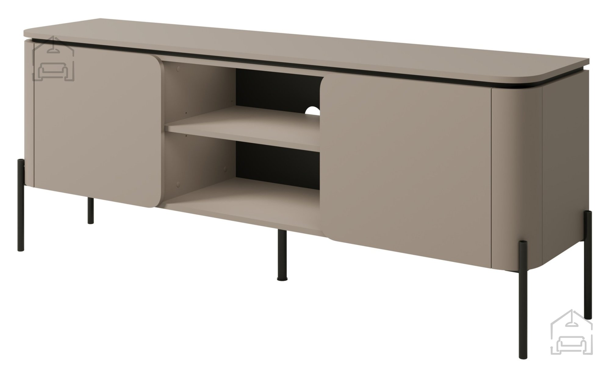 TV komoda Bello – Helvetia je sodoben kos pohištva, zasnovan za vse, ki želijo v dnevni sobi združiti funkcionalnost, eleganco in kakovostno izdelavo. Natančne linije, kovinske noge v črni barvi in topla barva congo ustvarjajo uravnotežen videz, ki se brez težav prilagodi različnim slogom notranje opreme – od minimalističnih do klasičnih ambientov. Model je izdelan iz trpežnih materialov, ki zagotavljajo stabilnost in dolgo življenjsko dobo, ob tem pa ohranjajo prijeten videz naravnega lesa.