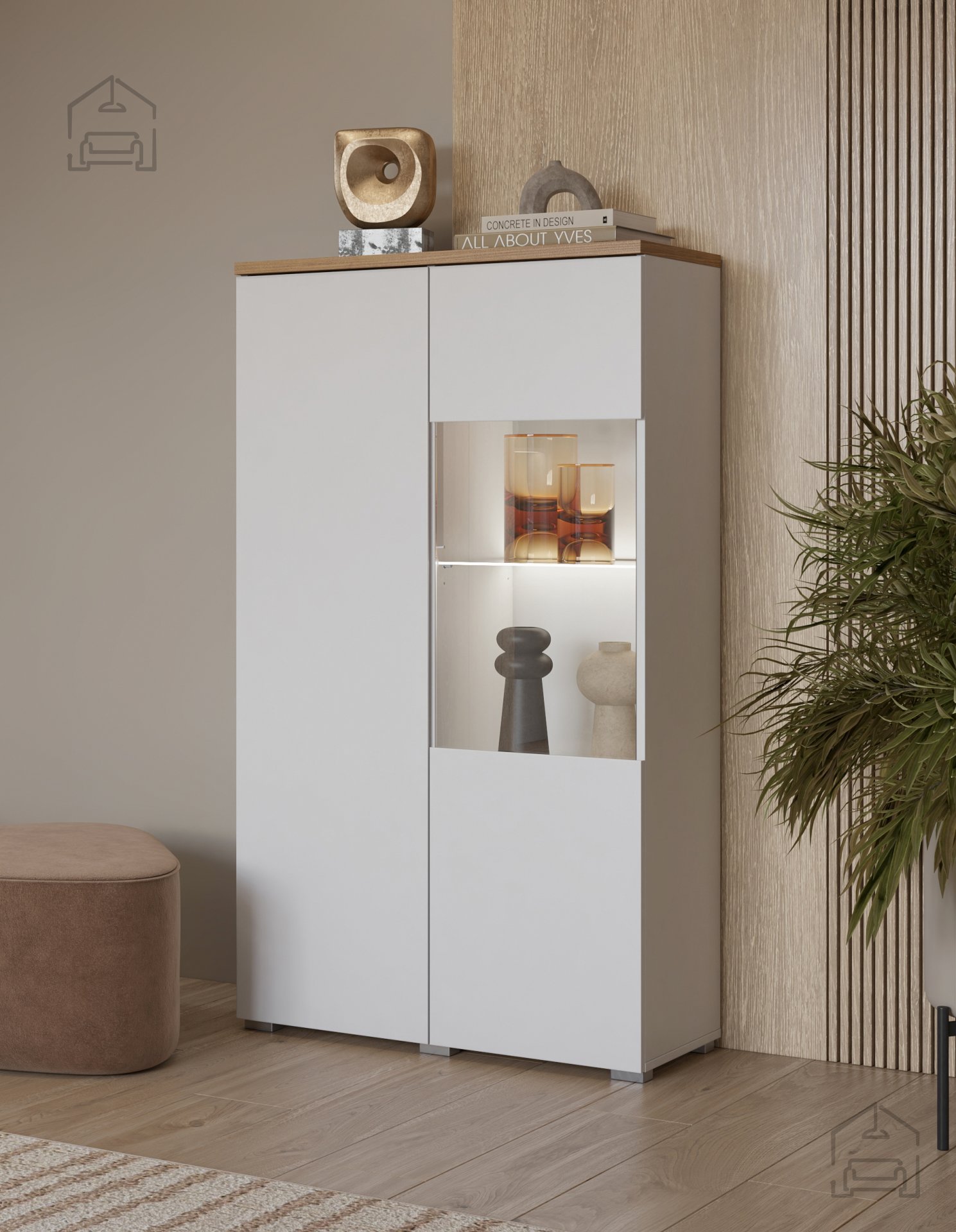 Barvna kombinacija bela in hrast mauvella ponuja popolno ravnovesje med svetlobo in toplino lesa. Bela barva optično poveča prostor ter vnaša občutek svežine, medtem ko lesni odtenek hrasta mauvella dodaja toplino in domačnost. Takšna kombinacija omogoča enostavno ujemanje z različnimi toni sten, tekstilom ali dekoracijo, zato se dnevna soba Modo odlično poda tako v sodobne kot v klasično opremljene prostore.