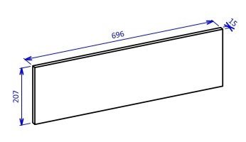 Dimenzije fronte znašajo 70 × 1,5 × 21 cm, kar jo uvršča med univerzalne elemente modularnih sistemov Helvetia Meble. Zahvaljujoč modularni konfiguraciji po meri se fronta lahko kombinira z različnimi tipi predalov in omaric v kolekciji Ore. To omogoča popolno prilagoditev posameznim potrebam uporabnika – tako pri zasnovi celotne omare kot pri samostojnih pohištvenih elementih. Modularnost sistema zagotavlja, da se vsak kos popolnoma uskladi z drugimi komponentami ter ohrani enoten videz prostora.