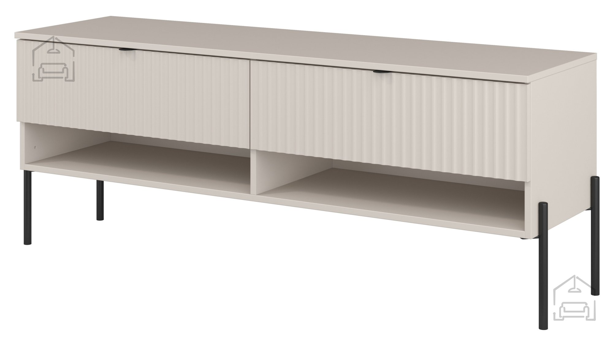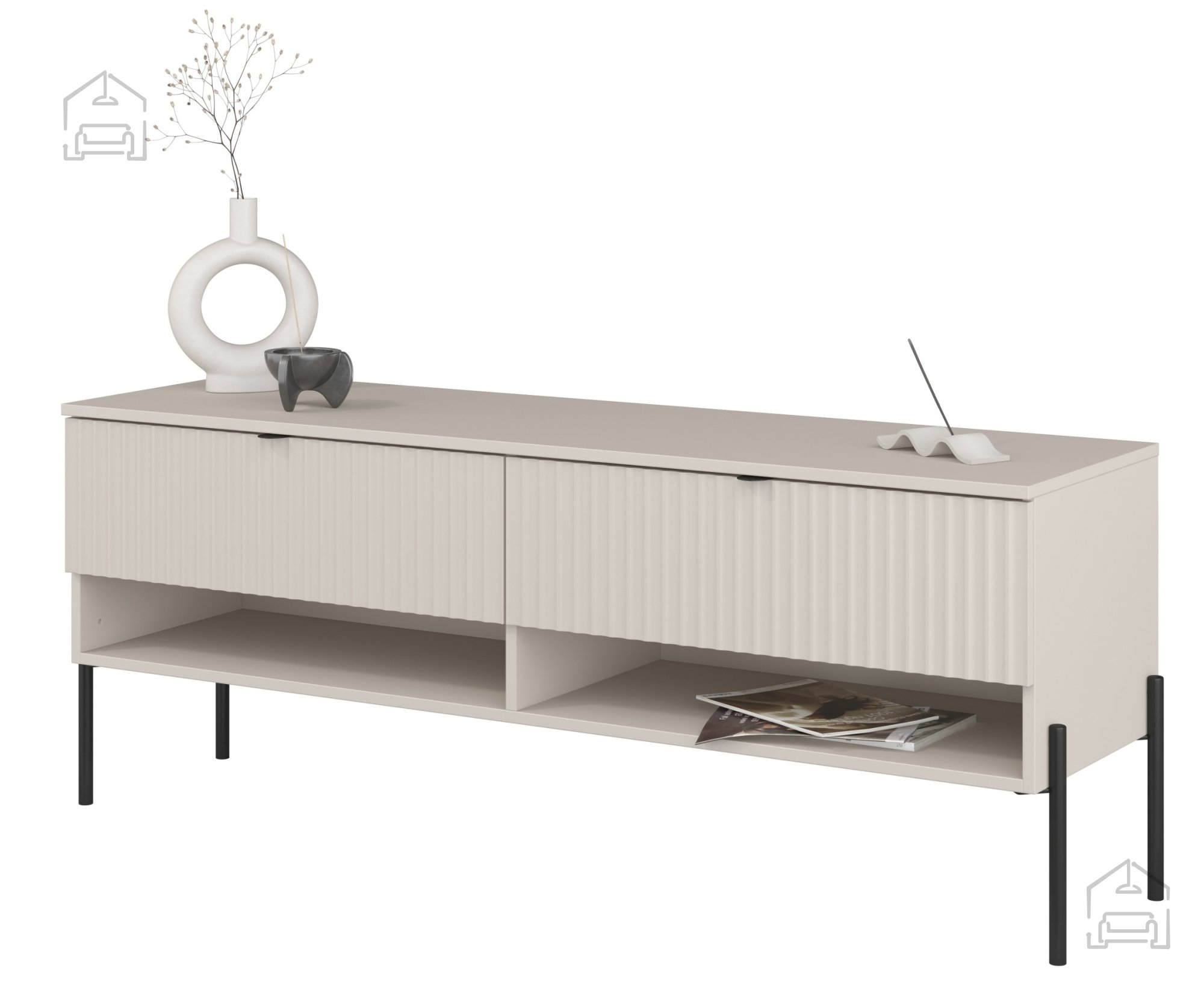 Elegantna TV komoda Ore v barvi kašmir z rebrasto strukturo združuje sodoben videz in praktično funkcionalnost. Z dimenzijami 140x41,5x55 cm se odlično prilagodi različnim dnevnim prostorom, hkrati pa s premišljeno zasnovo omogoča urejeno shranjevanje in estetsko dopolnjuje sodoben interier. Izdelek je rezultat poljske izdelave podjetja Helvetia meble, ki je znano po kakovostni obdelavi ploščastih materialov ter natančni izvedbi detajlov.
