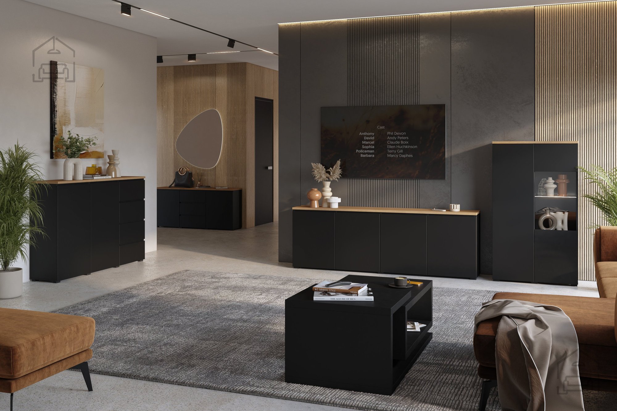 Dnevna soba Modo ponuja osnovo, ki jo je mogoče enostavno dopolnjevati z drugimi kosi iz iste serije ali z nevtralnim pohištvom. Zaradi svoje barvne kombinacije se odlično ujema z različnimi teksturami – od svetle tkanine do kovinskih dodatkov. Primerna je za manjše kot tudi večje prostore, saj temni in svetli odtenki skupaj ustvarjajo občutek ravnotežja in prostornosti.