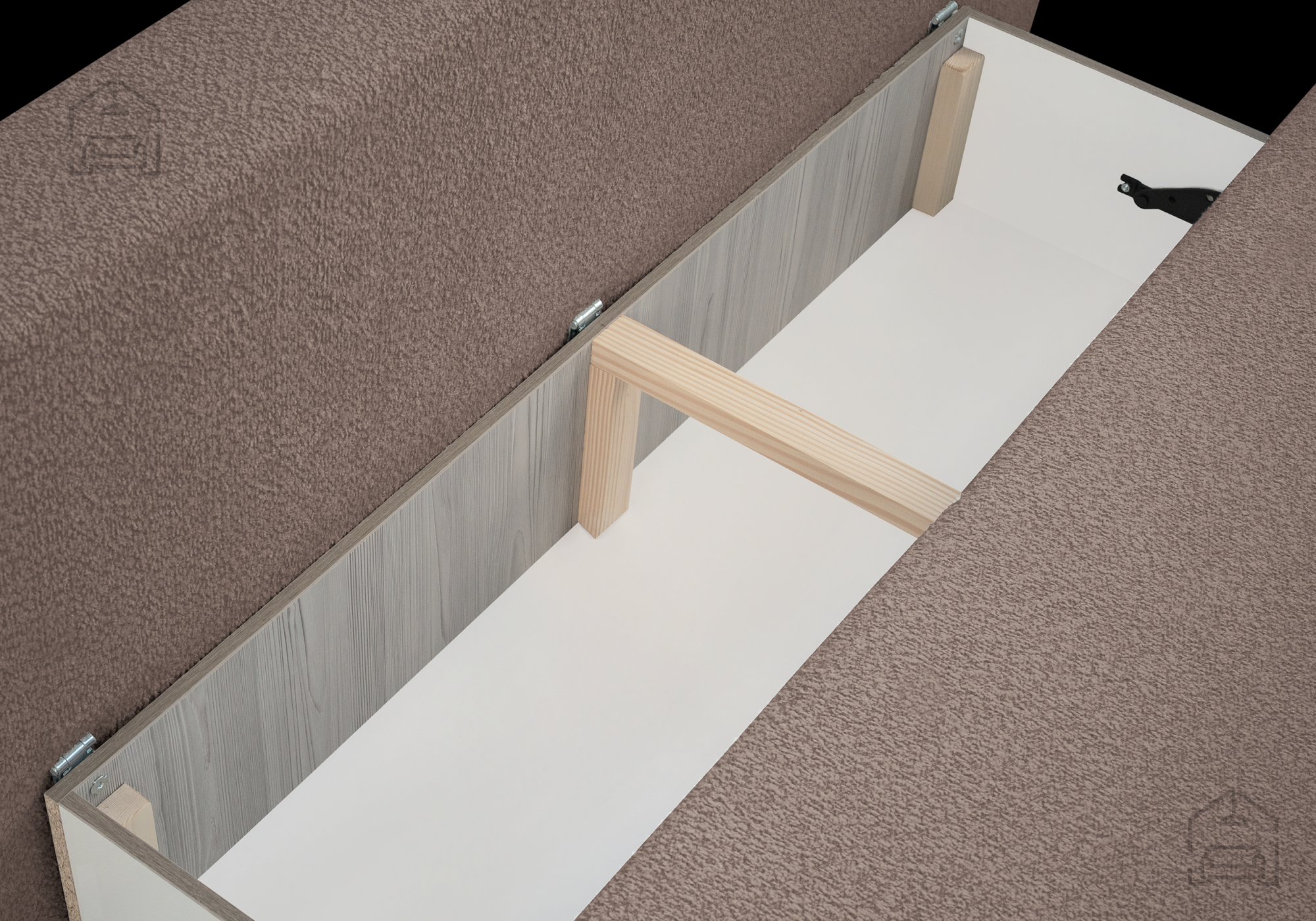 V notranjosti troseda se skriva tudi predal za posteljnino, ki omogoča priročno shranjevanje odej, blazin ali posteljnine. Ta funkcionalnost je še posebej uporabna v manjših stanovanjih, kjer je vsak centimeter prostora dragocen.