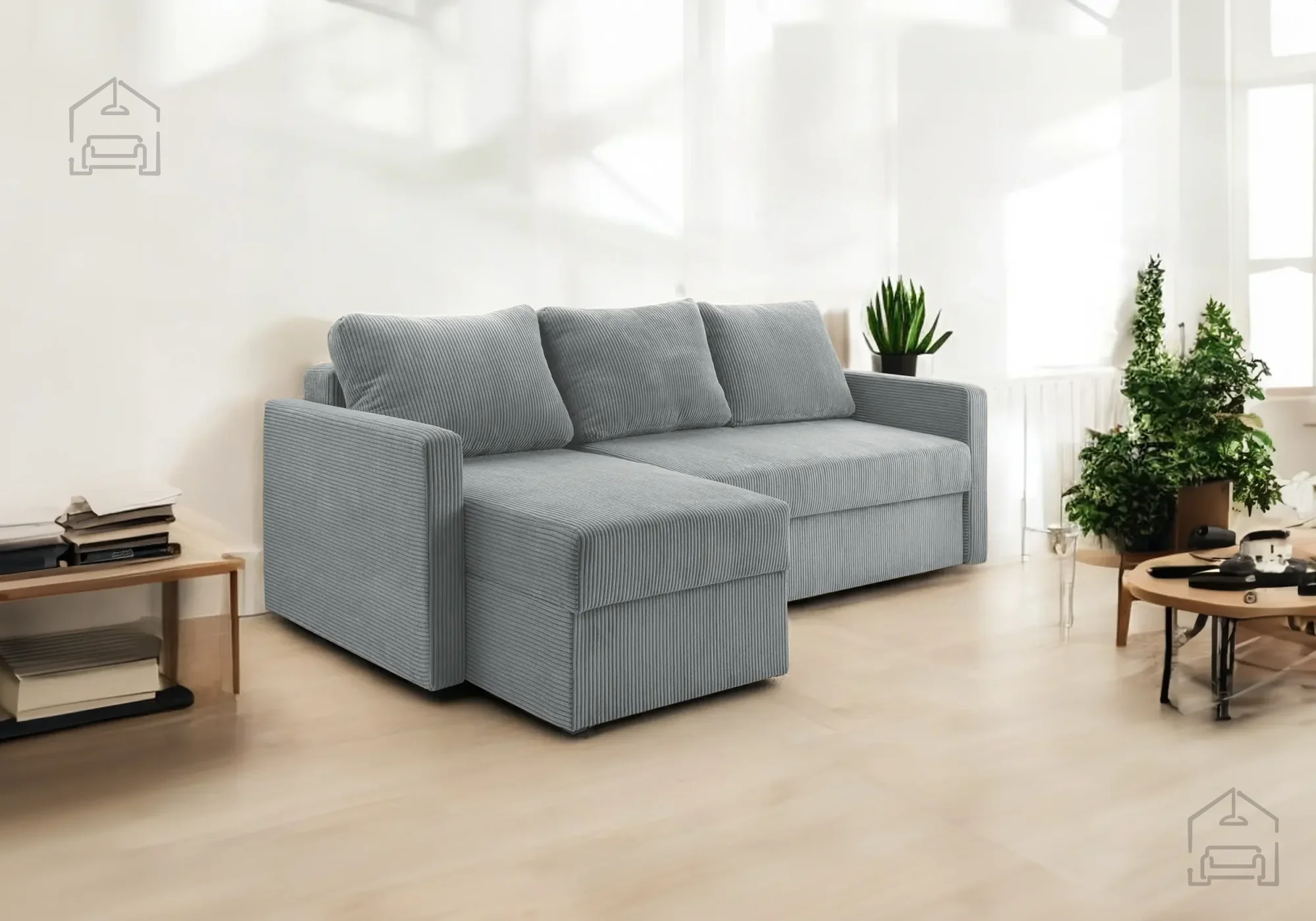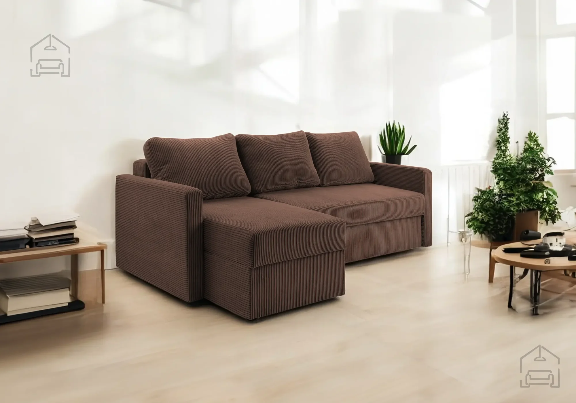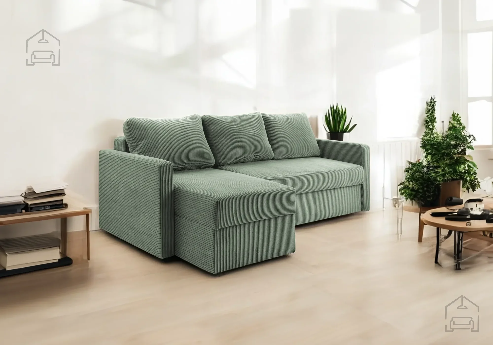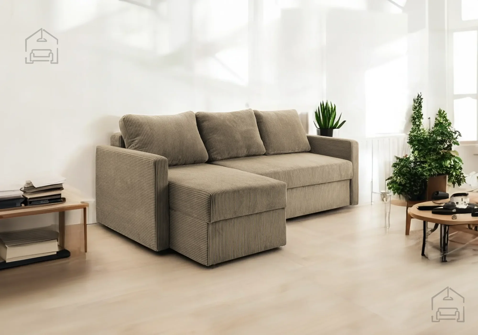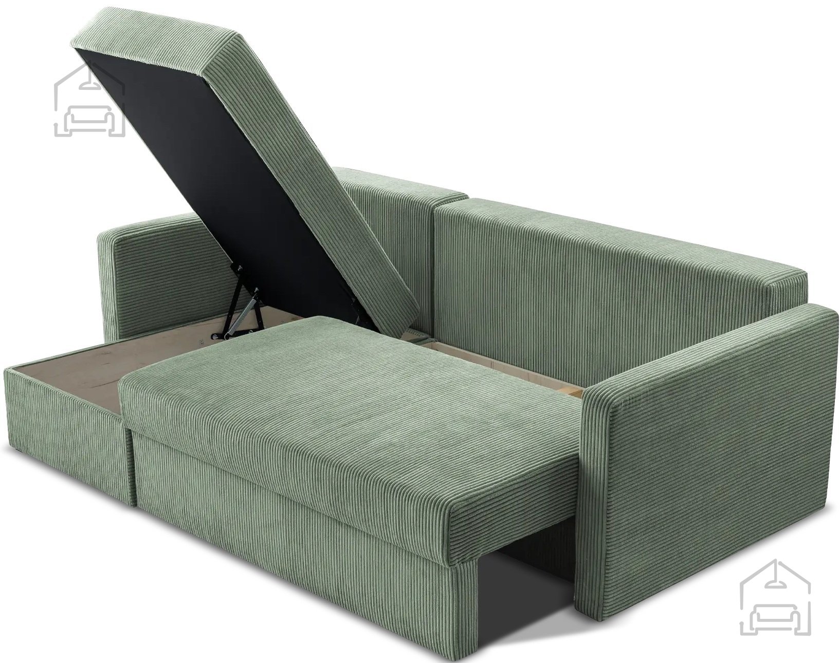 • Vgrajen predal za posteljnino, ki poskrbi za urejen videz dnevnega prostora.