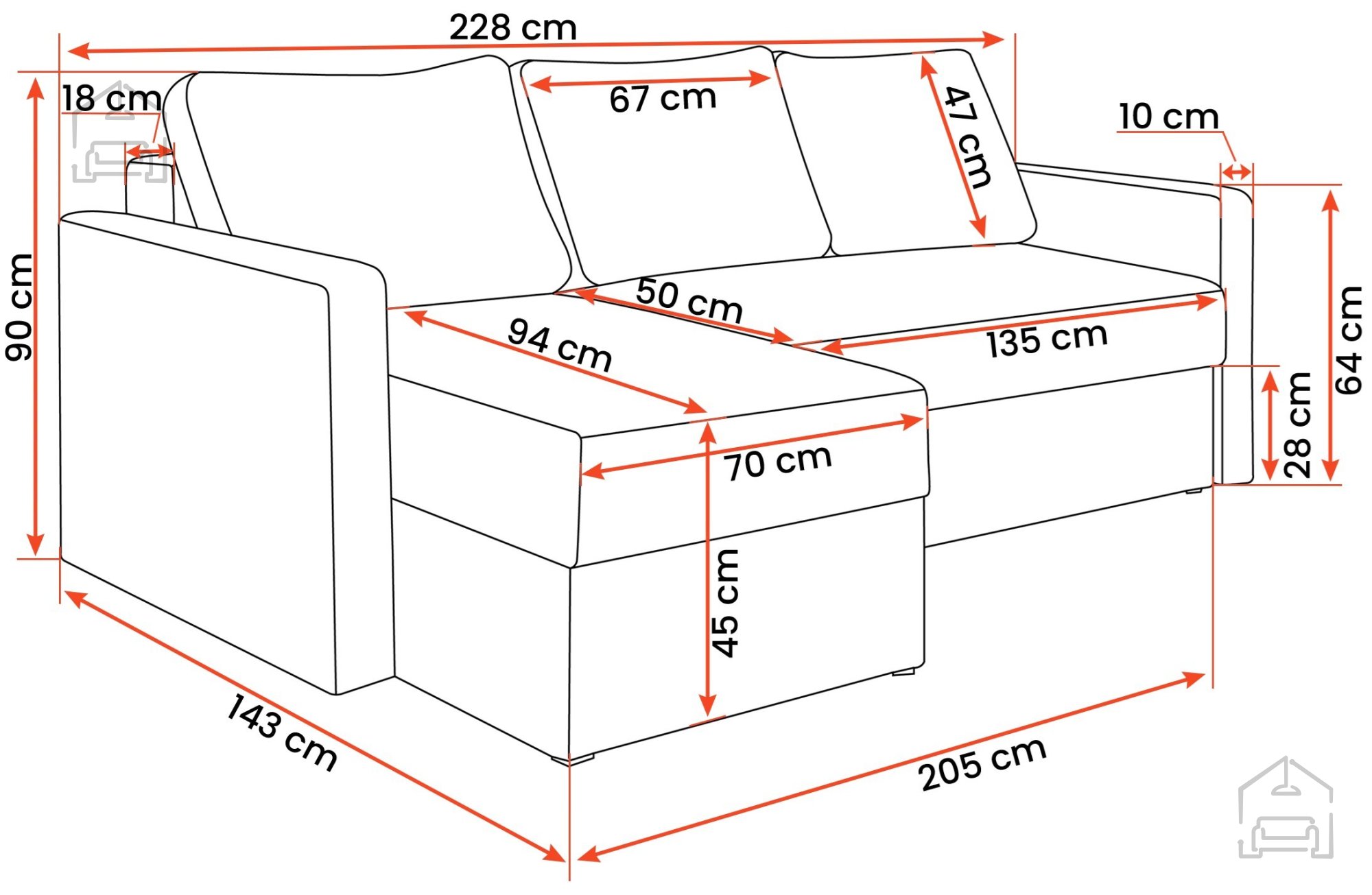 • Dimenzije: 228x143x90 cm