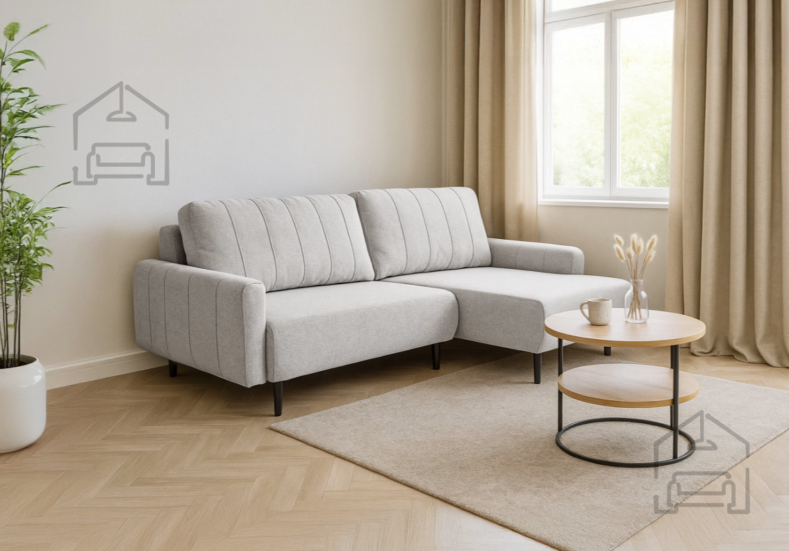 Kotna garnitura Sprint s svojo uravnoteženo obliko in čistimi linijami prinaša občutek lahkotnosti v prostor. Dekorativne blazine dopolnjujejo celoten videz in omogočajo dodatno prilagoditev udobja. Zaradi svoje zmerne velikosti in funkcionalnosti je primerna tako za prostorne dnevne sobe kot tudi za manjša stanovanja, kjer je vsak kvadratni meter pomemben.
